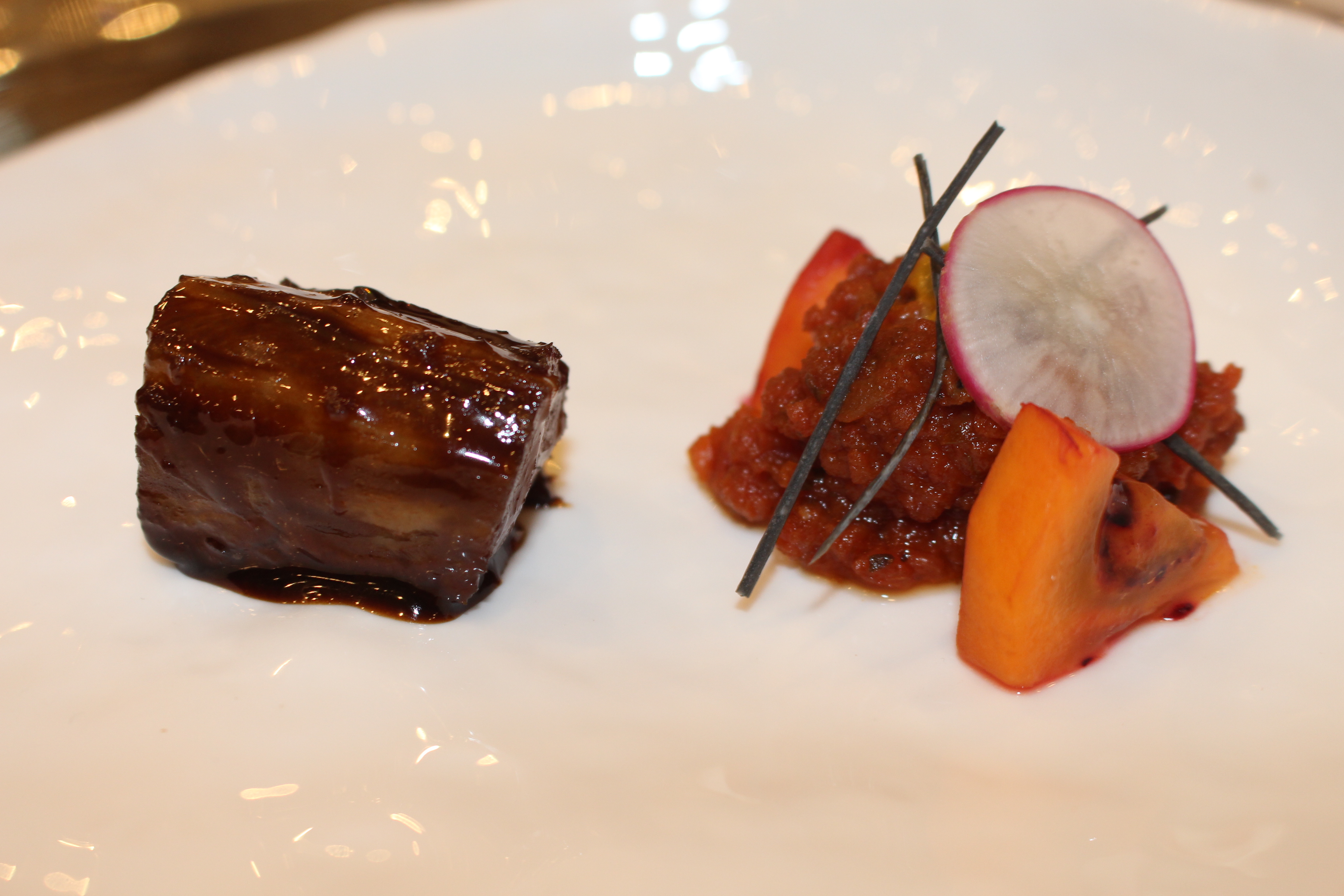 Papada de cerdo ibérico curada con piquillo asado y trufa de Aragón