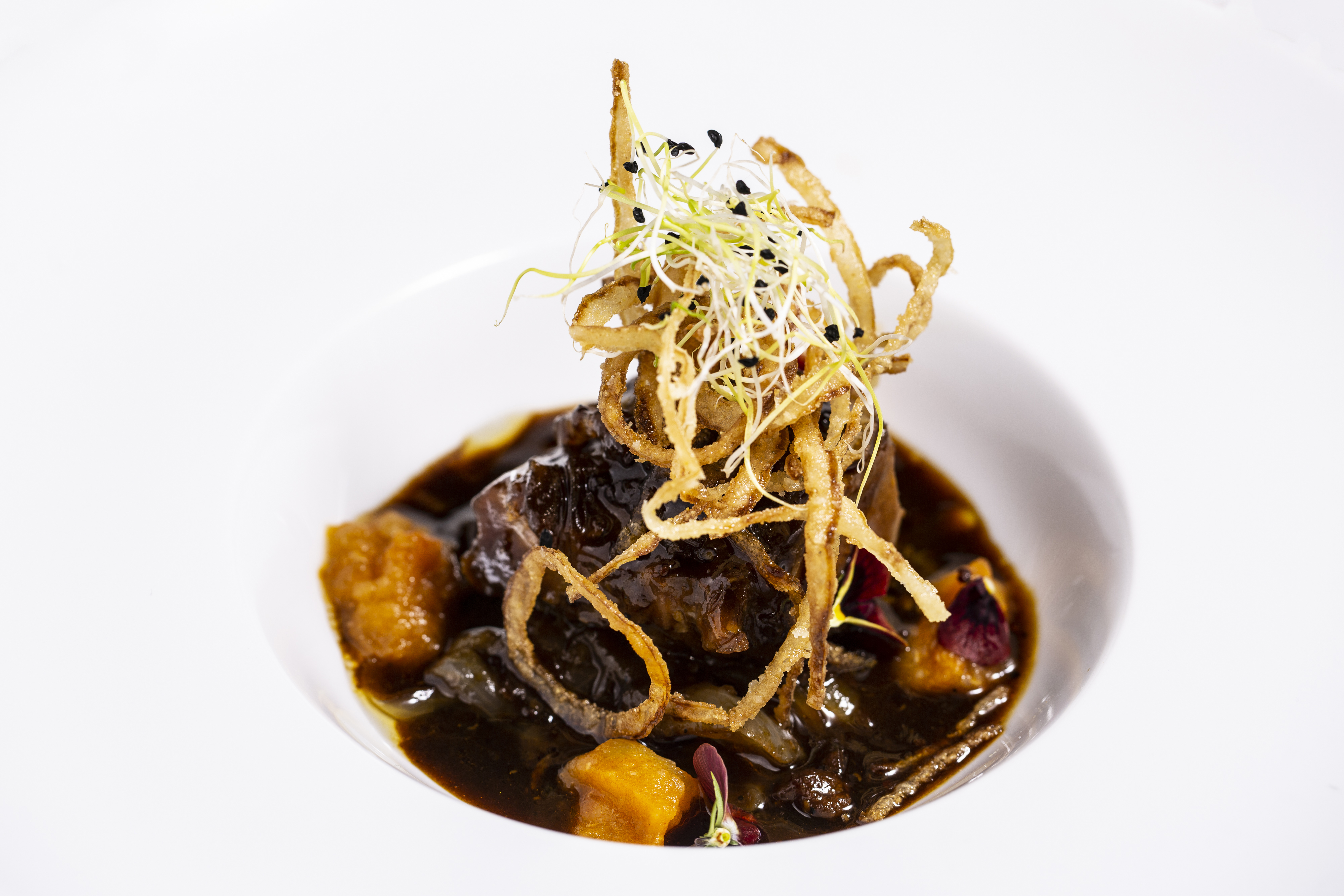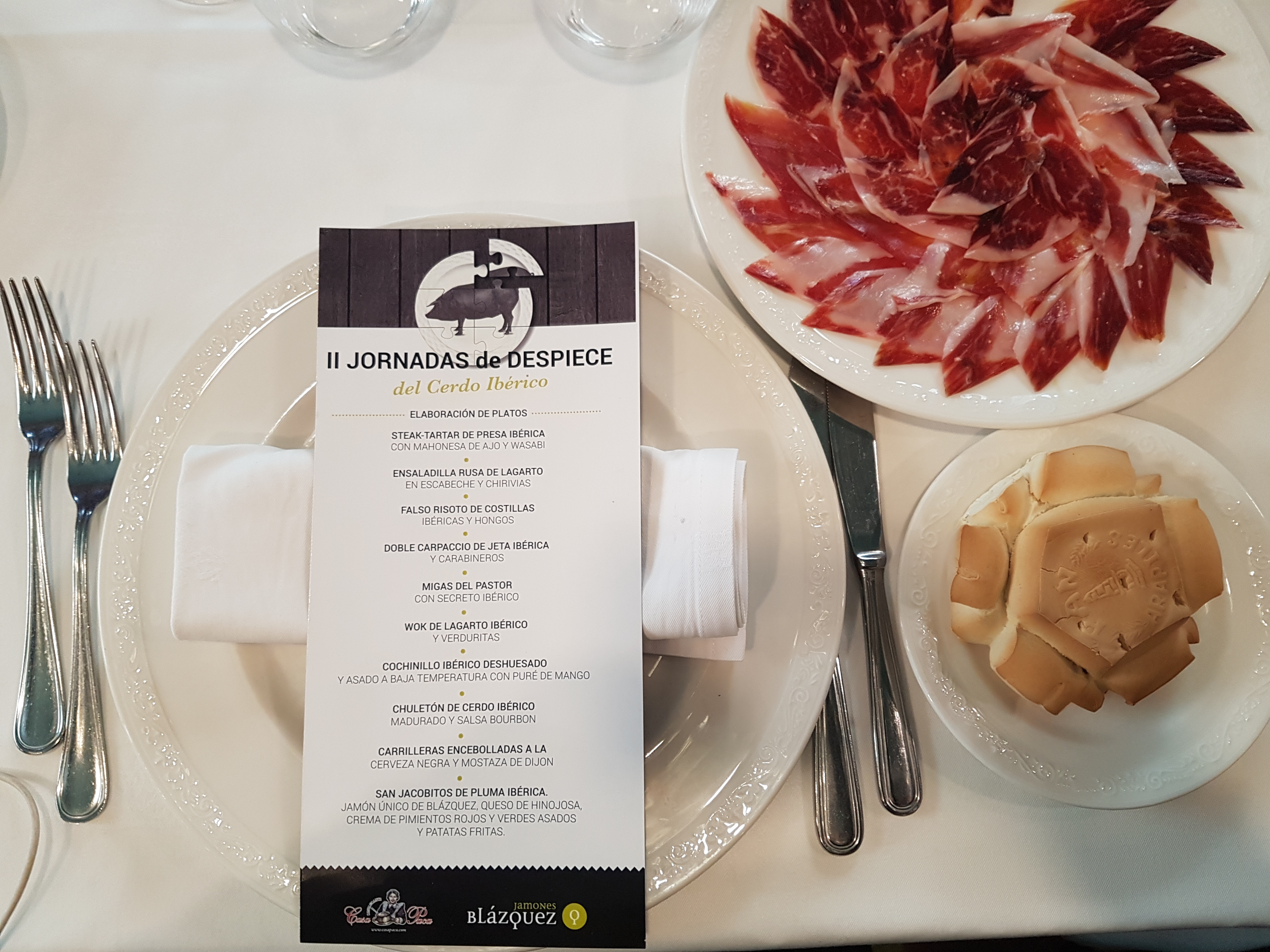 Esta auténtica fiesta gustativa tuvo como colofón el menú elaborado por Casa Paca que podéis degustar hasta finales de Marzo en su establecimiento. Un menú muy logrado en el que han sabido preservar el sabor del excelente cerdo ibérico con cuidadas elaboraciones y estéticas presentaciones. No puedo sino calificar de logradísimo el steak tartar de presa ibérica, el falso risoto de costillas, el doble carpaccio de jeta Ibérica, las migas del Pastor con secreto ibérico, el wok de lagarto ibérico y verduritas, el cochinillo ibérico deshuesado y asado a baja temperatura con puré de mango, el chuletón de cerdo ibérico, las carrilleras encebolladas a la cerveza negra o los San Jacobitos de pluma ibérica.