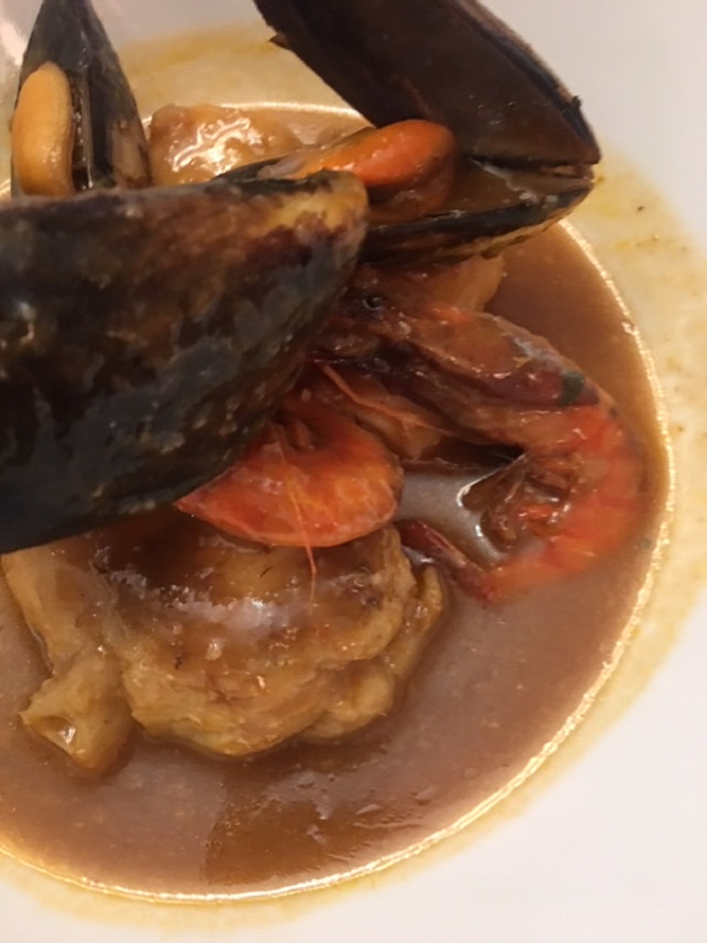 A su edad, cada mañana se enfunda el delantal para hacer las delicias de una clientela fija que gusta de deleitar su paladar con los guisos y los platos de siempre. El día en cuestión, el menú incluía fabes catalanas, estofado de patatas, conejo a la brasa o un rape a la marinera, entre otras suculentas sugerencias. Cocina de todos los tiempos, en la que se relativiza el tiempo físico en beneficio de esos lentos cocinados que desafían la apresurada lógica de estos tiempos de inmediatez absoluta.
