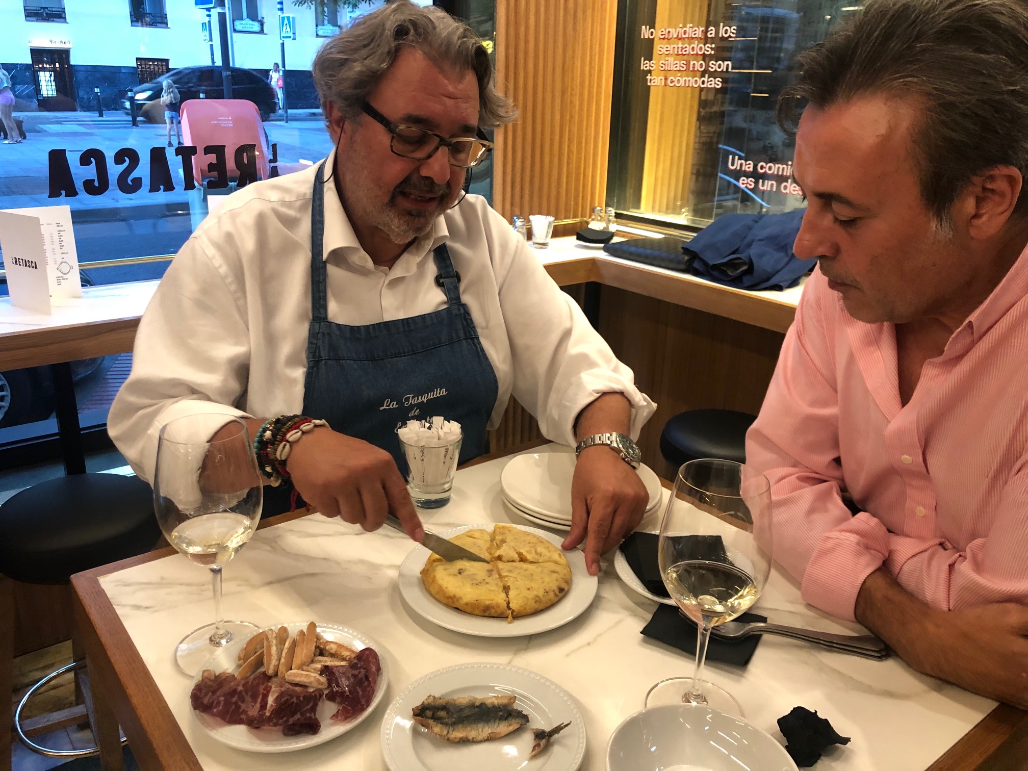 Reconozco mi debilidad por Juanjo López, con él tengo las mismas sensaciones que me transmitía mi recordado Santi Santamaría, la de estar con un cocinero profundamente culto y respetuoso con la herencia gastronómica recibida de sus antepasados y de la tierra que le vio nacer, en este caso la tabernaria Madrid de la que no pudo recibir mayor enseñanza que la recibió de su padre. Ese impagable espíritu tabernil, lo mantuvo en La Tasquita de Enfrente (www.latasquitadeenfrente.com), elevando el establecimiento a la categoría de lugar de culto. No me equivoco si digo que estamos en uno de los lugares en España donde mejor se puede disfrutar de la auténtica dimensión del producto, porque las elaboraciones que lleva a cabo Juanjo son técnicamente perfectas y rezuman sentido común.