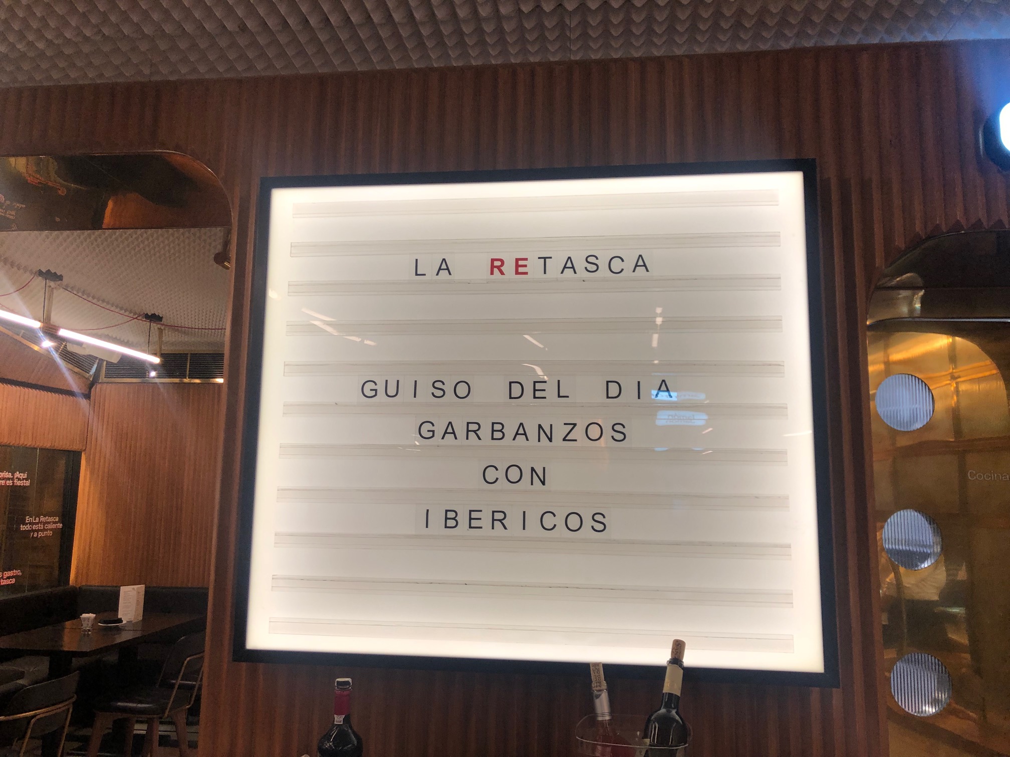 La Retasca se ha ubicado en el llamado espacio gastronómico de moda en Madrid, en la zona de Retiro. Se llama Bulbiza y agrupa propuestas toda de primer nivel, como es el caso de Julián de Tolosa, Bistronómika, El Marginal, un espacio dedicado al vino en el que participa el gran enólogo Raúl Pérez, y al que en breve se sumarán más iniciativas
