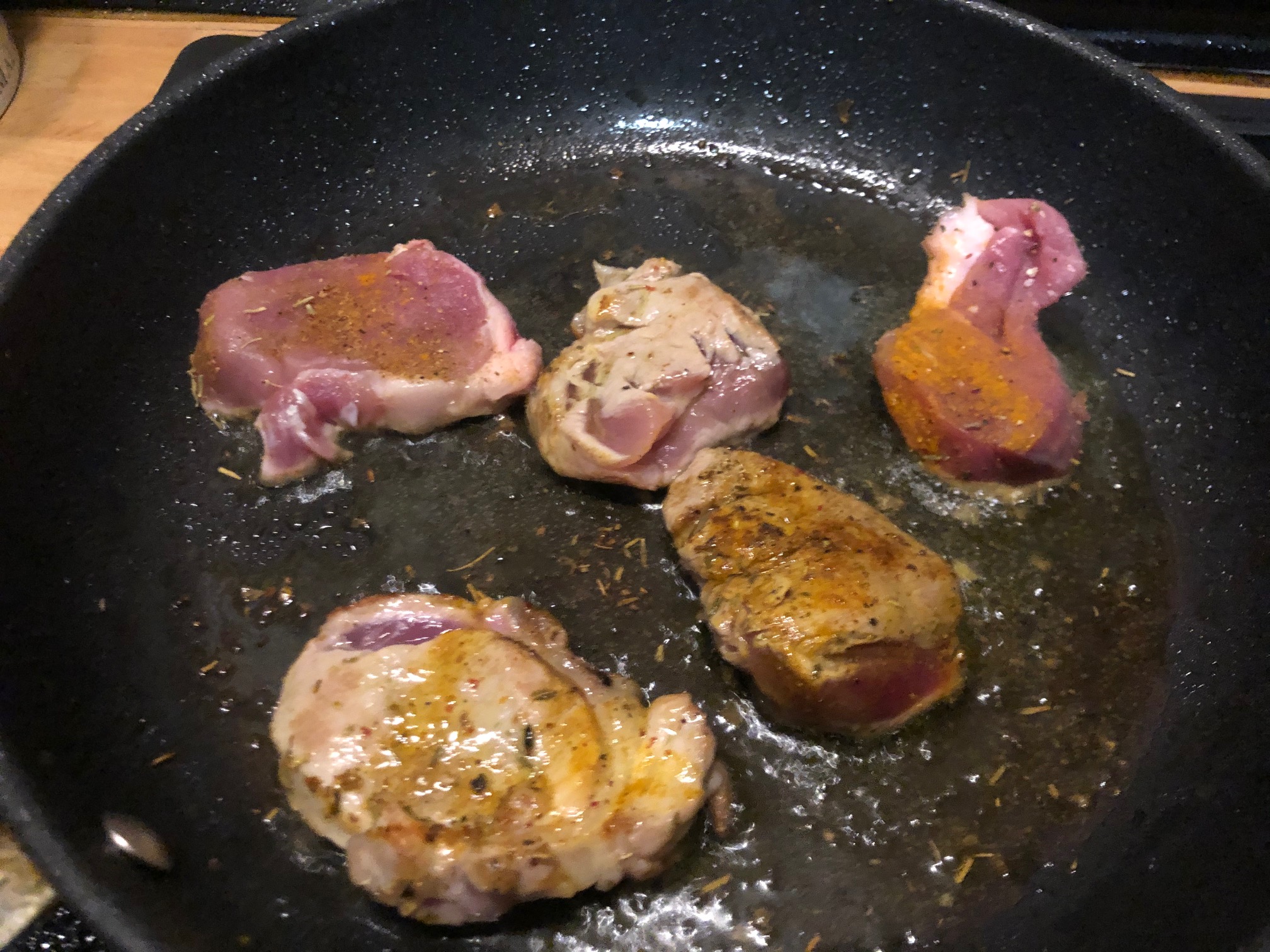 Especiamos los medallones al gusto con un chorro de buen aceite de oliva y lo dejamos marinar unos 30 minutos