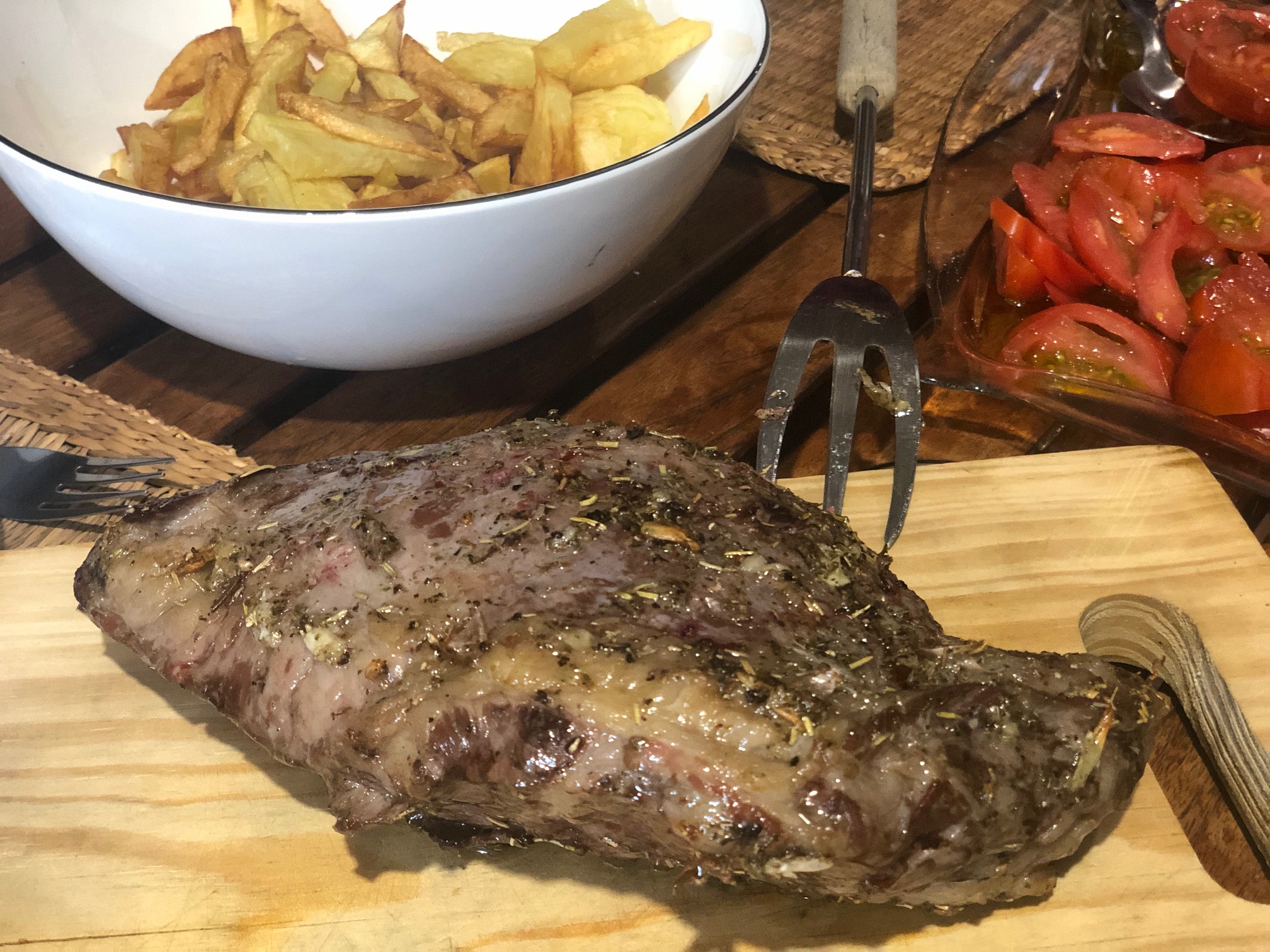 De guarnición he preparado unas patatas fritas con una ensalada de tomate