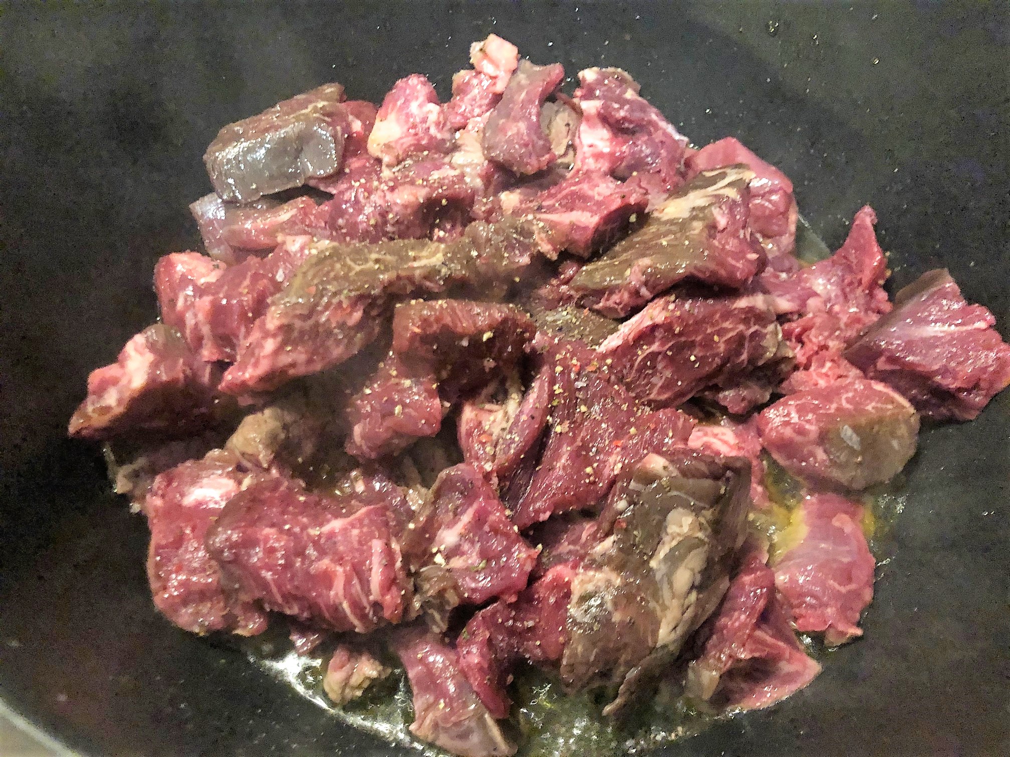 Sellamos en una olla con aceite de oliva los trozos de carne salpimentados y retiramos