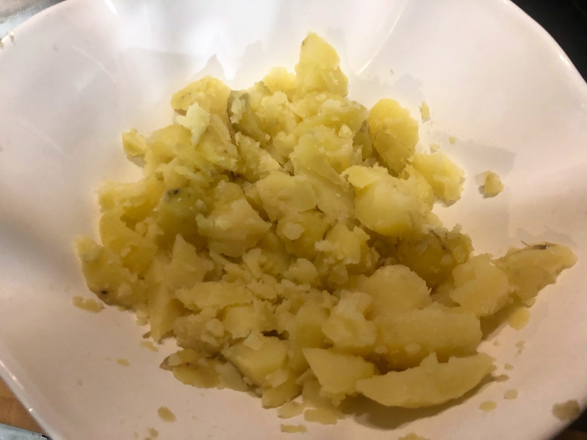 Machacamos las patatas y salamos