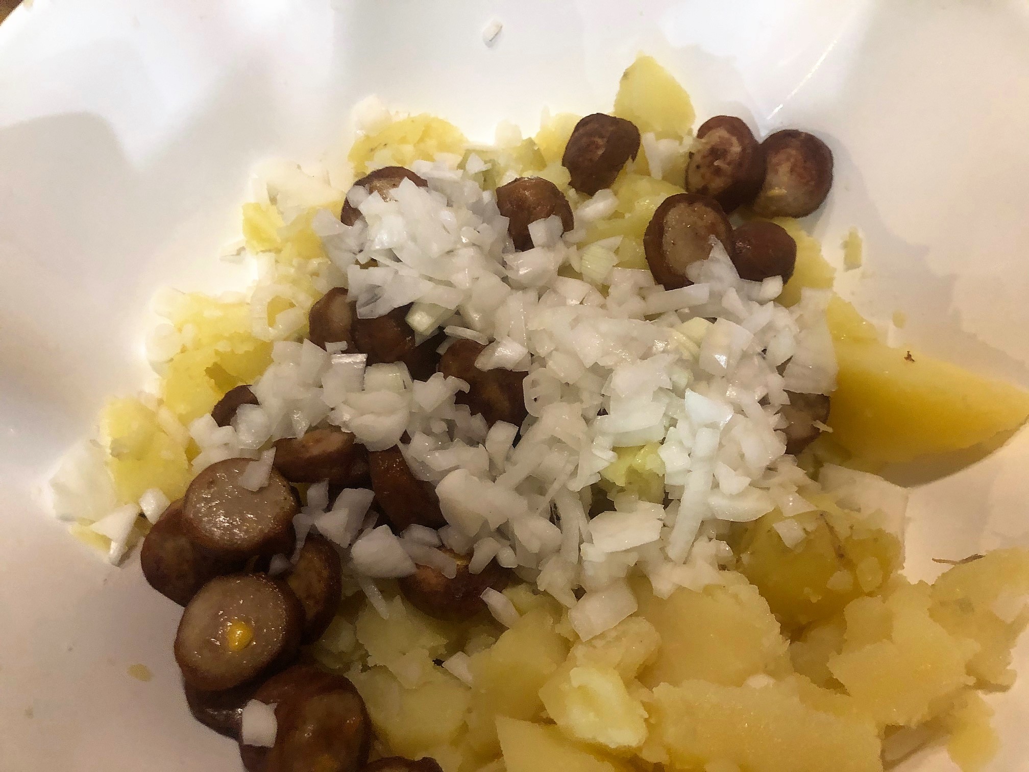 Hoy hemos preparado una ensalada alemana a nuestro estilo, la llamada “ensalada de patata” o Kartoffelsalat tiene muchas variantes en su elaboración. Os dejo la receta que preparamos en casa, perfecta para un aperitivo o acompañante de carne o pescado.