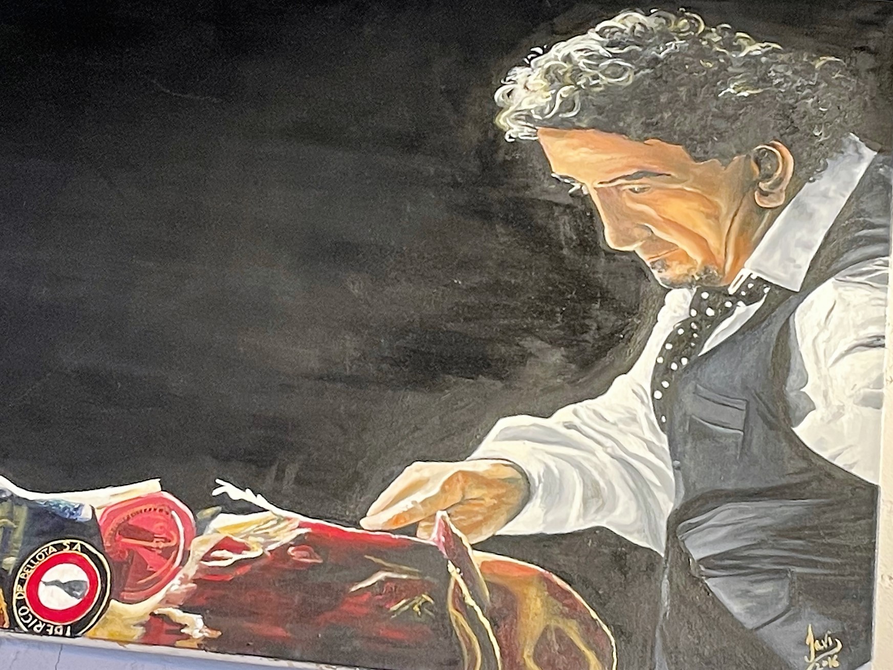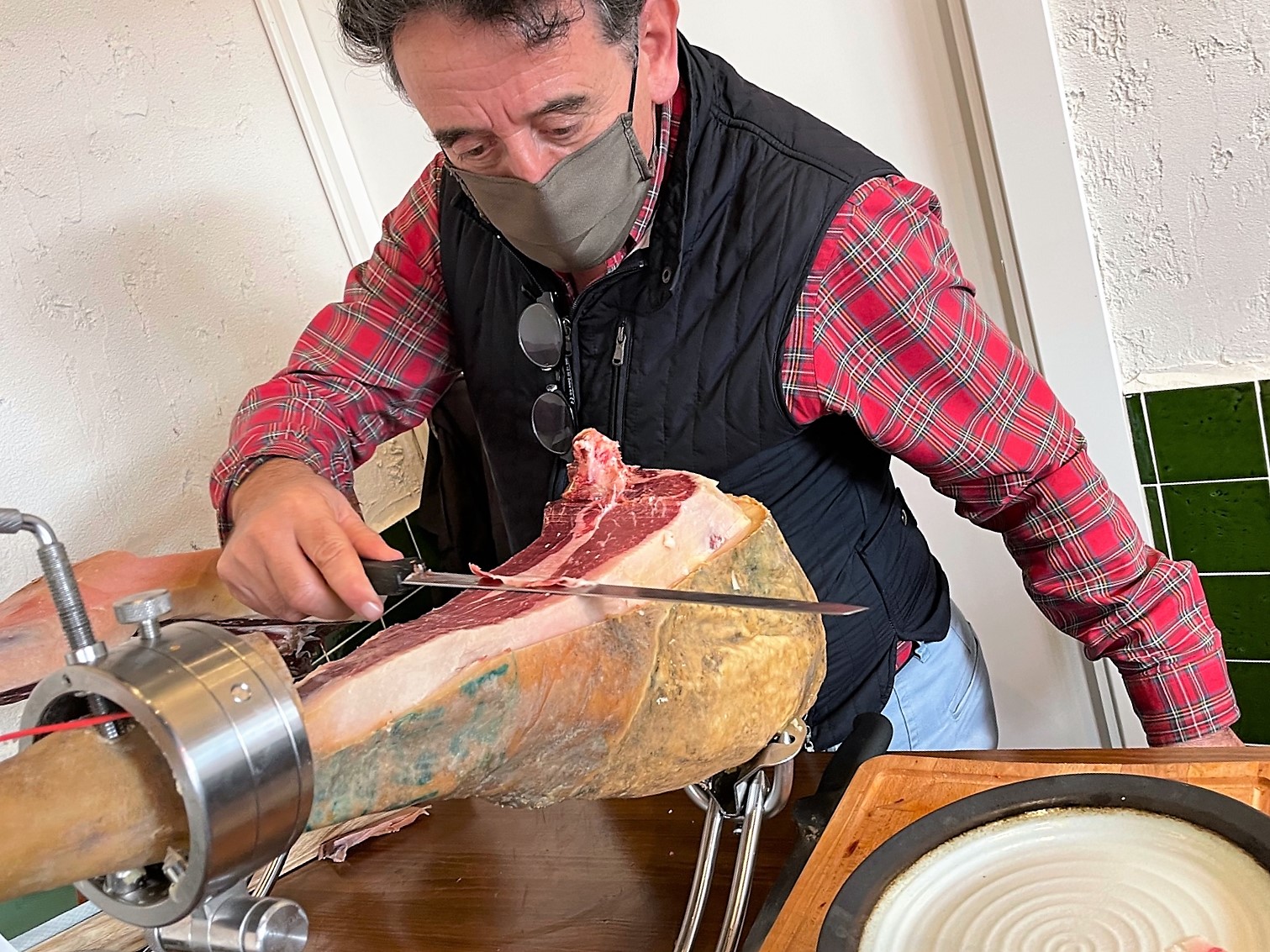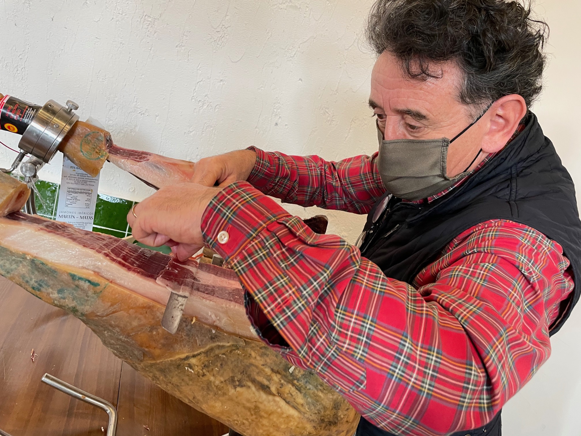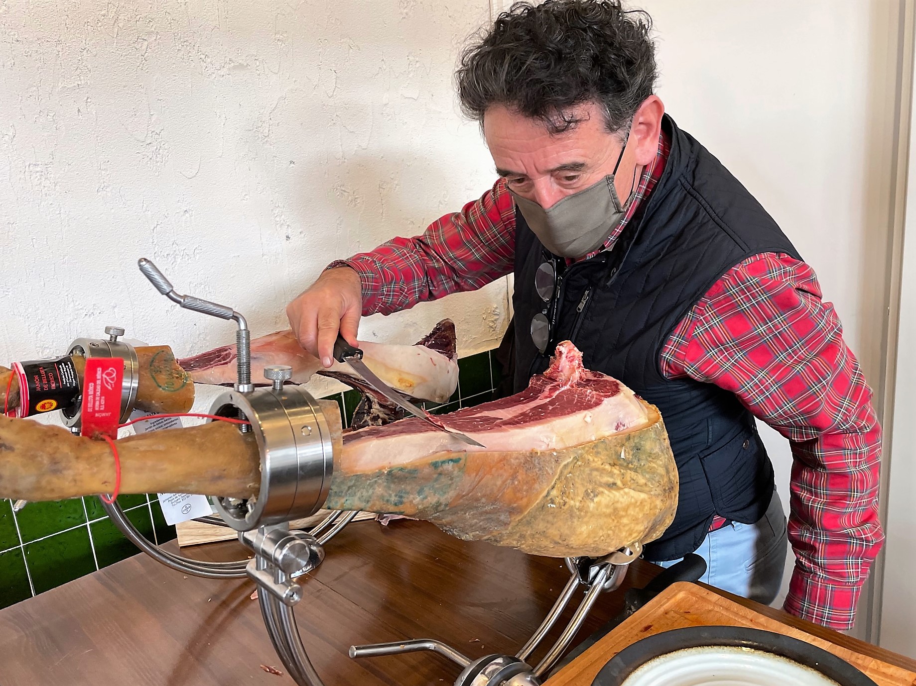 Allí se encuentra Florencio, inmerso en este nuevo proyecto, sólo con ir a verle ya el lugar merece más de una visita. El mayor ejemplo de cómo convertir el corte de jamón en un espectáculo. Antiguo novillero, torea y lidia literalmente al jamón, le habla, le dedica poemas con una maestría que impresiona.