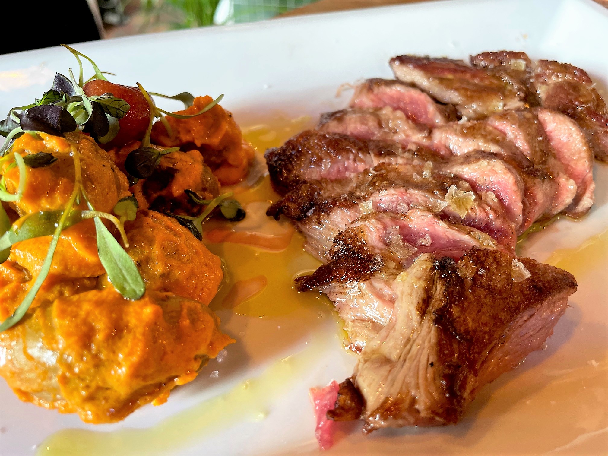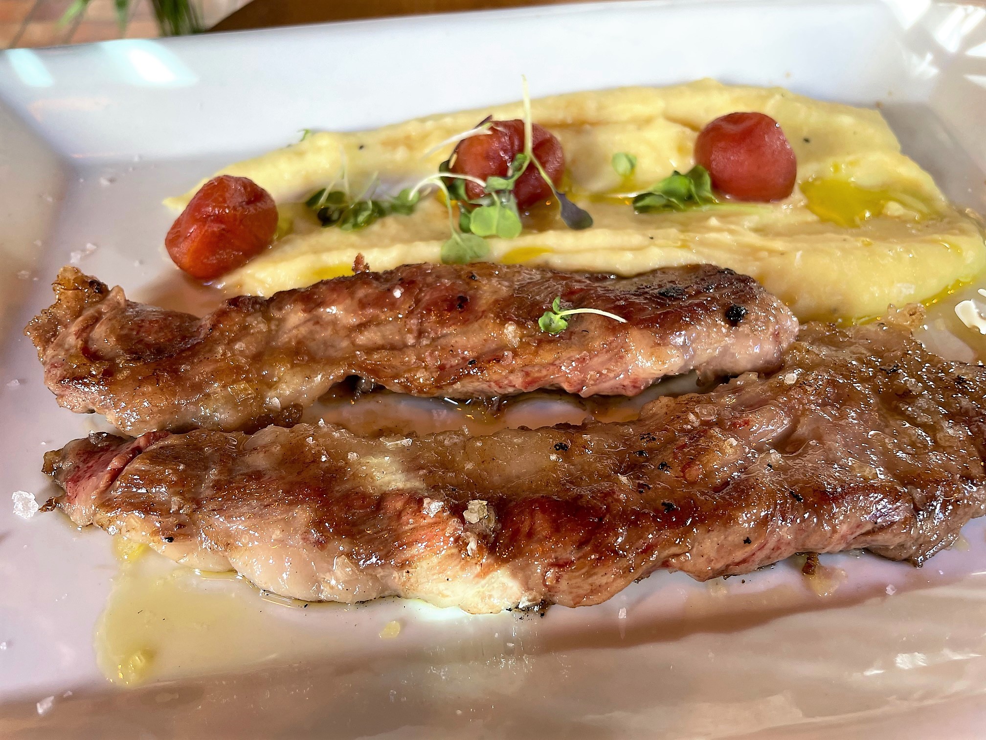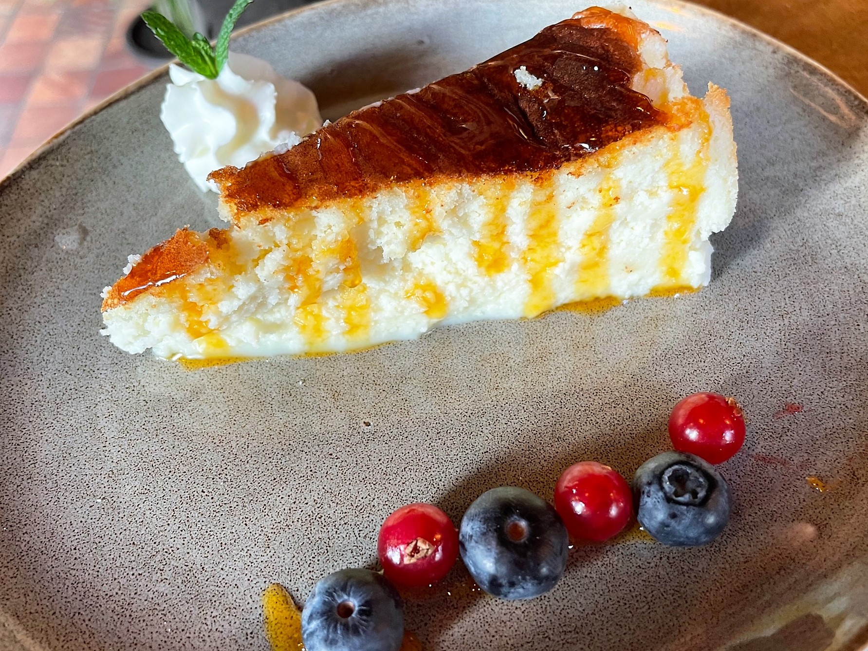 Tras disfrutar del corte de jamón ibérico de Florencio como excelso aperitivo, pedimos recomendados por Florencio y José Tomás, dueño de este establecimiento, un lagarto y un solomillo de la Dehesa extremeña, absolutamente deliciosos. Productos únicos de nuestro país, perfectamente elaborados por Domingo Dugarte, un joven chef venezolano que sabe perfectamente como mimar el producto. Y para terminar una tarta casera de queso de cabra.