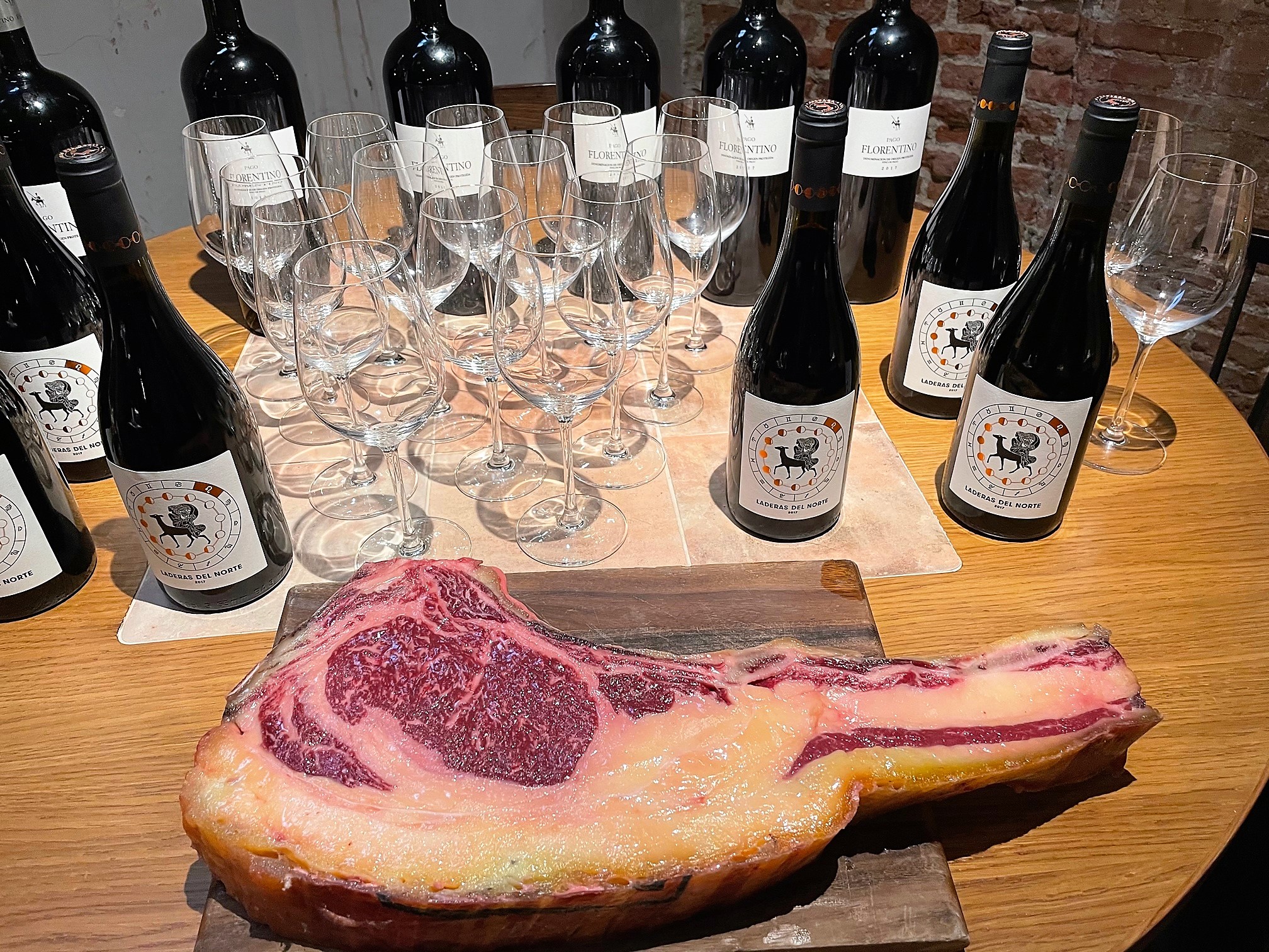 En la presentación de estas impresionantes carnes se armonizo la velada con vinos de la Bodega Arzuaga, Laderas del Norte y Pago Florentino, que maridaban perfectamente con el sabor de los bueyes portugueses.
