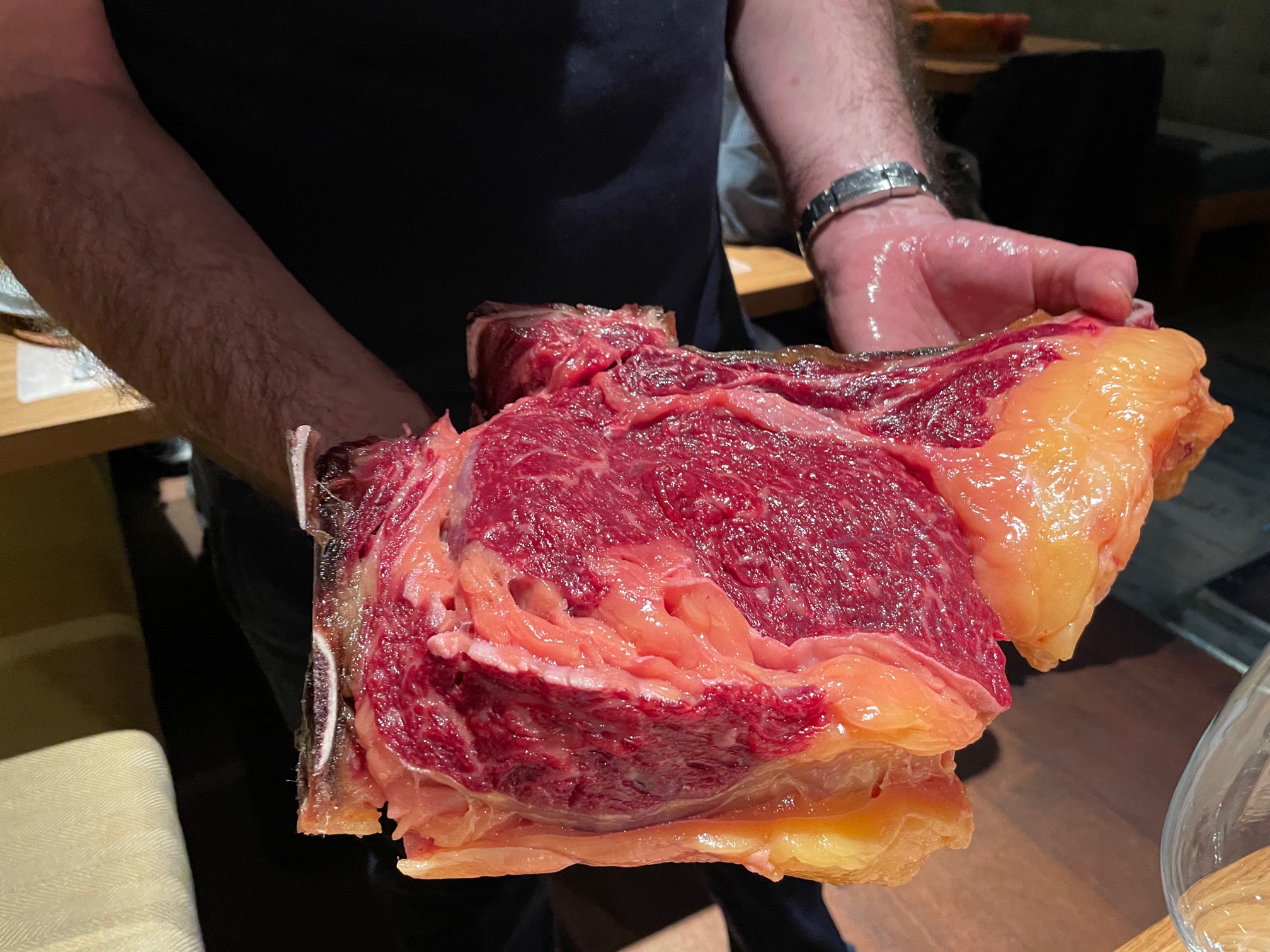 “Disfrutar del corte del lomo de un animal completo, de carne intensa y cromática, es una maravilla, un placer que no se ve todos los días ni para los más expertos en carnes”. Apunta Xose Portas.