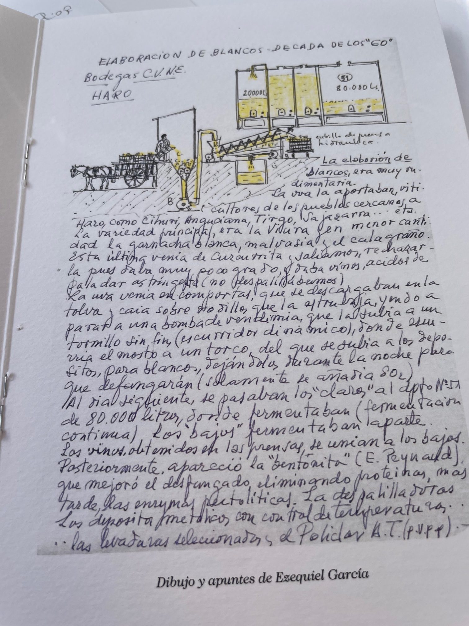Este vino nos remonta a otra época, a través de un vino sabroso, fresco, equilibrado y delicioso, elaborado de una mezcla de uvas blancas. La crianza tiene una duración aproximada de 8 meses en barricas de y botas usada de diferentes capacidades, uniendo así en este vino a Rioja y Jerez, dos de las zonas vitivinícolas más emblemáticas de la península.