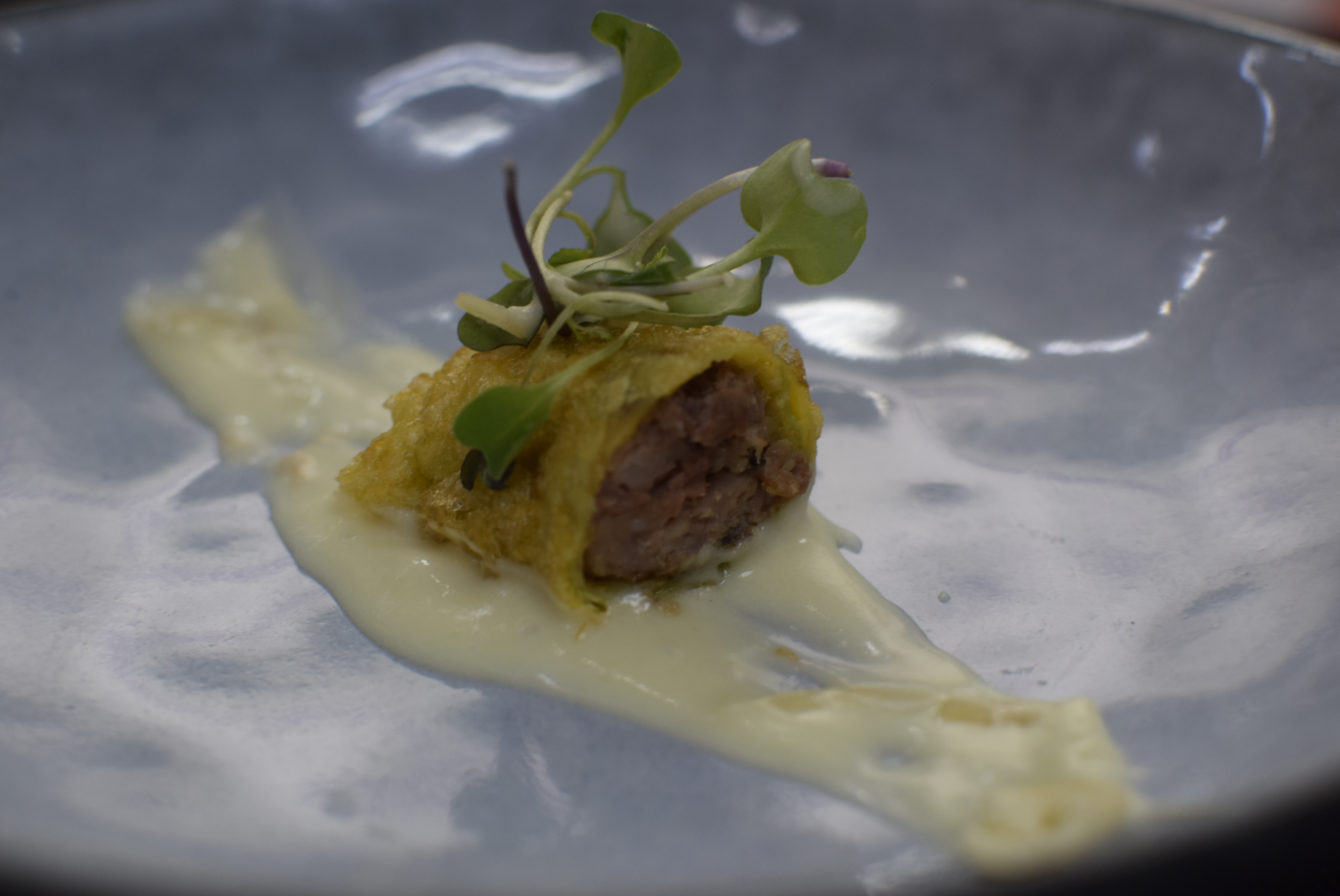 Pepa Muñoz, presidenta de FACYRE y propietaria de El Qüenco de Pepa, recuerda a su abuela con aquellos filetes rusos envueltos en hoja de repollo cocida que posteriormente reboza y fríe, que le preparaba de pequeña. Ahora ella los versiona cambiando la salsa verde habitual por una parmentier de patata y almendras fileteadas. La receta también es un homenaje a las mujeres de Ucrania, que tanto sufren esta guerra, allí se realiza una elaboración similar que recibe el nombre de Golubtsi.