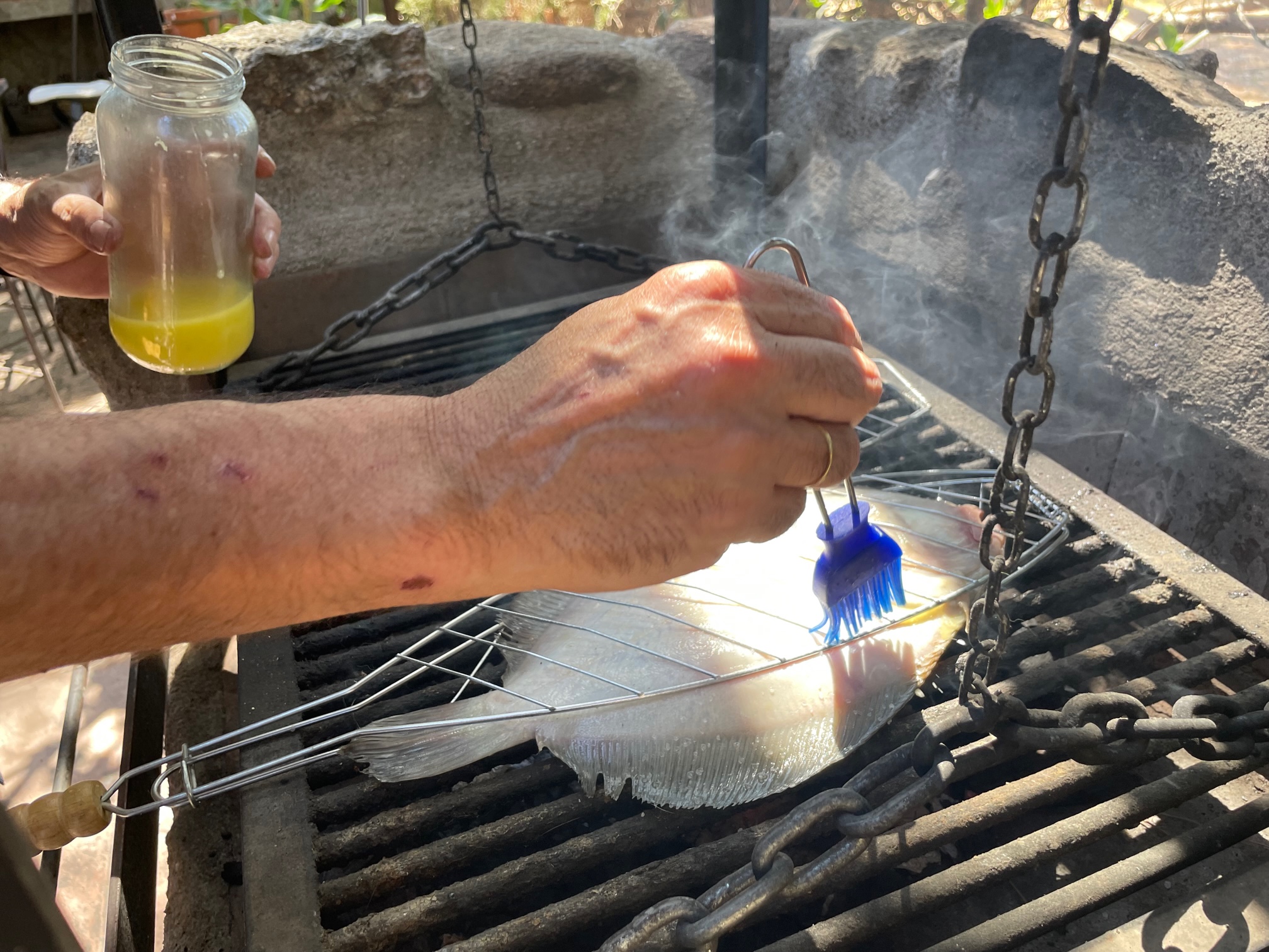 He preparado una salsa con aceite de oliva y el zumo de un limón. Con un pincel añadimos la salsa al pescado por los dos lados