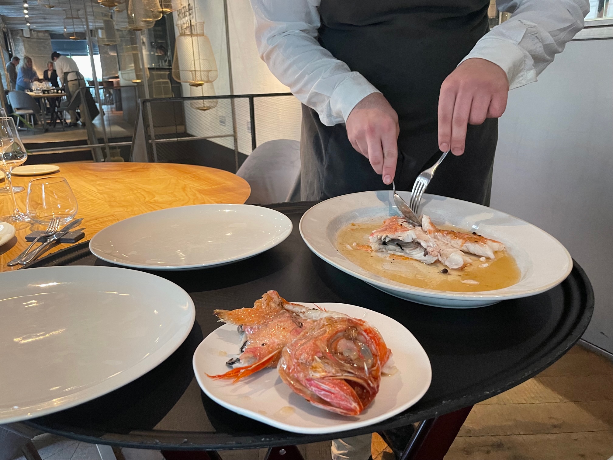 Resulta gratificante y es de valorar comprobar el alto nivel de los camareros a la hora de describirte los platos y verificar su destreza a la hora de diseccionar los pescados, dándote a descubrir insólitos y deliciosos bocados.