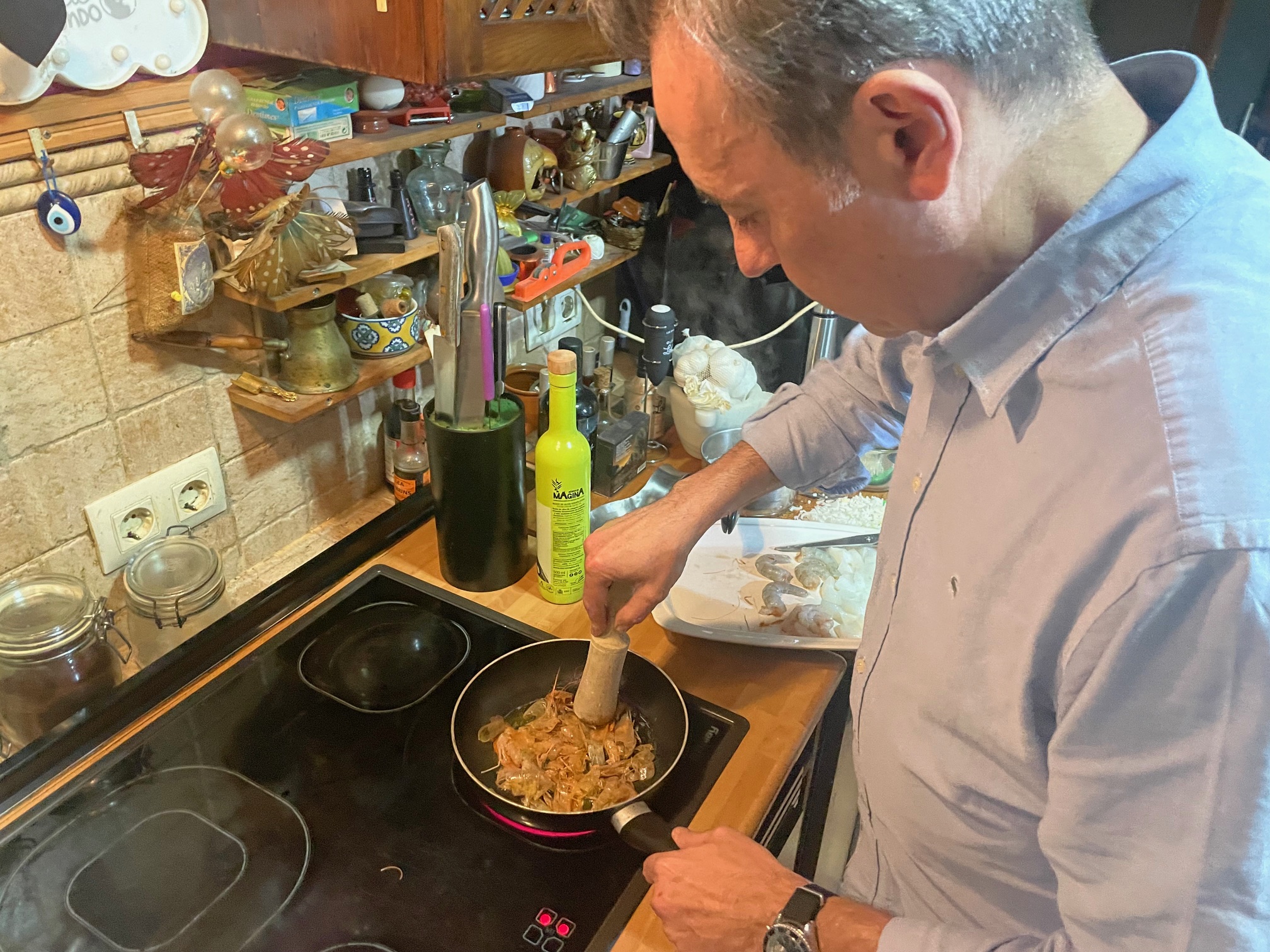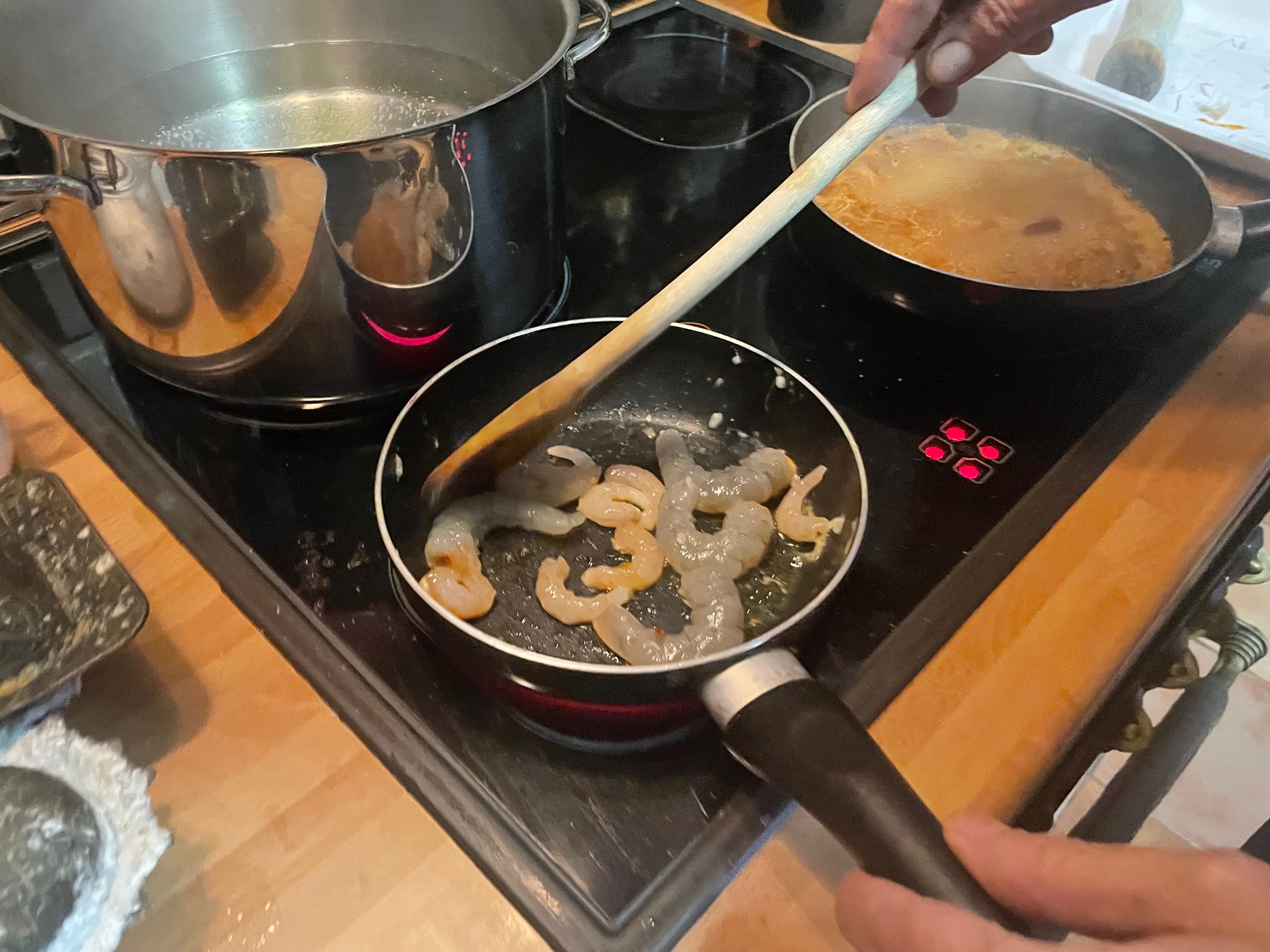 En ese mismo aceite doramos las gambas y los langostinos
