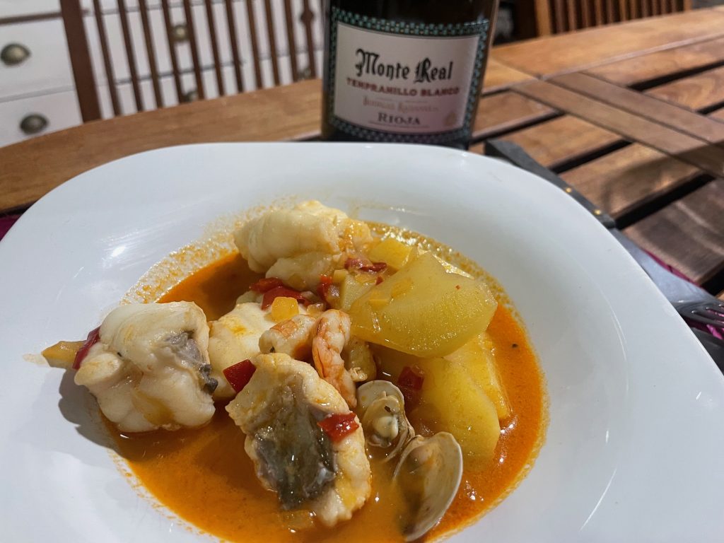 Caldereta de rape con un vino muy especial