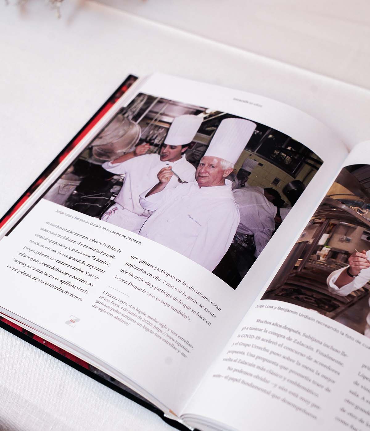 Su contenido ha sido elaborado y editado por la editorial Planeta Gastro siendo las autoras de sus textos las periodistas Susana Gómez, Noelia Jiménez y Sibely Valle, quienes desglosan una historia contada también por sus grandes protagonistas como son: el mítico cocinero Benjamín Urdiain (fallecido en este 2023); José Jiménez Blas y Carmelo Pérez, antiguos jefes de sala; Custodio López Zamarra, antiguo sumiller; Jorge Losa, actual jefe de cocina; Roberto Jiménez y Luis Miguel Polo, actuales maîtres y Raúl Revilla actual sumiller, junto a otros colaboradores y testigos de su historia, dando vida a esta creación editorial. Este libro es un hito en la historia del que fue el primer restaurante en España en conseguir tres estrellas Michelin en 1987, refugio de la beautiful people y punto de reunión de empresarios, políticos y referentes del mundo de la cultura durante décadas y hasta la actualidad, brújula de una época y, por encima de todo, referencia gastronómica en la historia de España