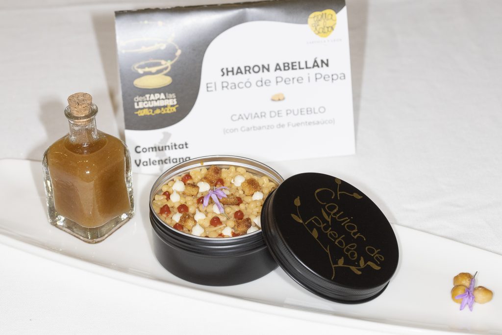 Campeona del I Campeonato Nacional desTAPA las LEGUMBRES Tierra de Sabor, dotado con un premio de 3.000 euros, para Sharon Abellán Verdú, del Restaurante El Racó de Pere i Pepa, de Pinoso (Alicante), por su tapa «Caviar de Pueblo».