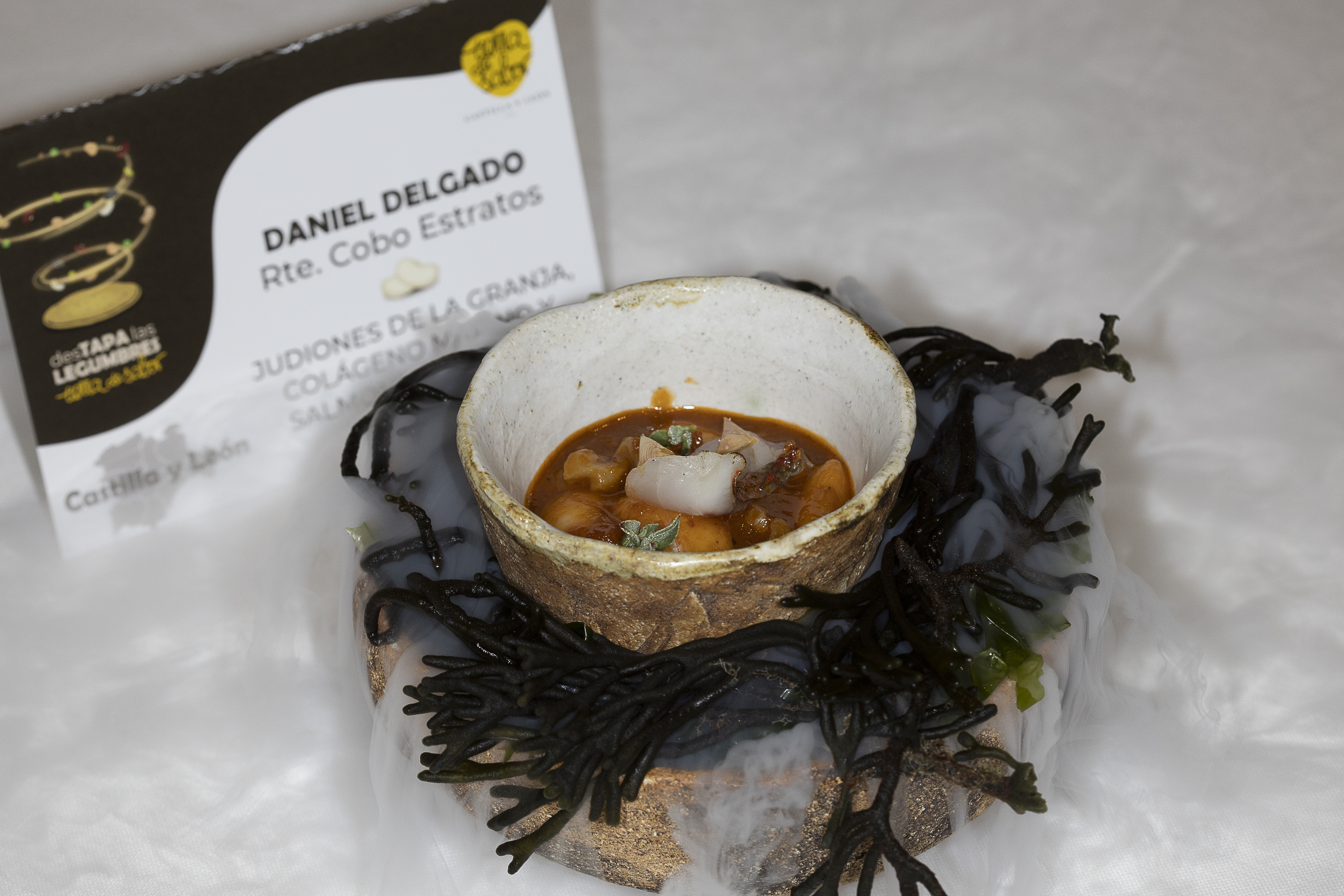 El Subcampeón clasificado en segundo lugar del I Campeonato Nacional desTAPA las LEGUMBRES Tierra de Sabor, dotado con un premio de 2.000 euros, ha sido otorgado a Daniel Delgado Lucas del Restaurante Cobo Estratos de Burgos (Castilla y León), por su tapa «Judiones de la Granja, Colágeno Marino y Salmonete de Roca Soasado».