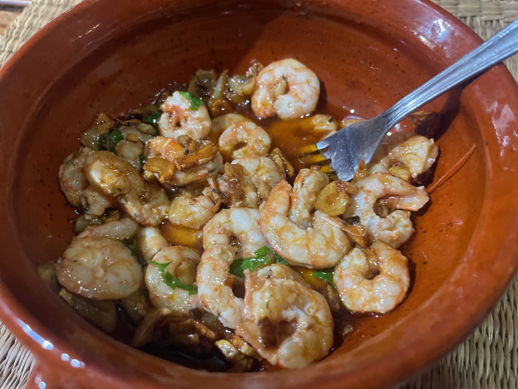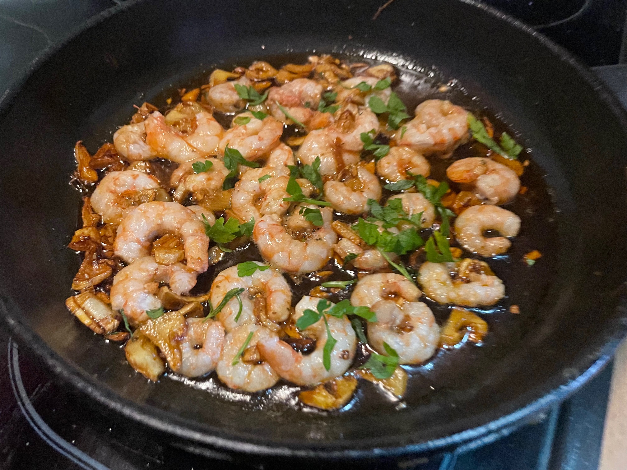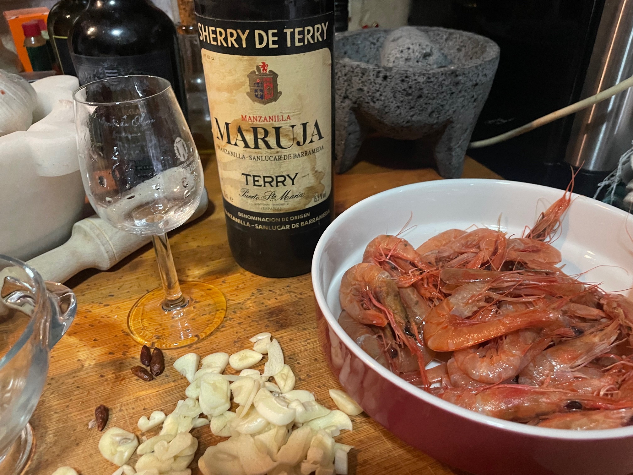 Gambas al ajillo con manzanilla