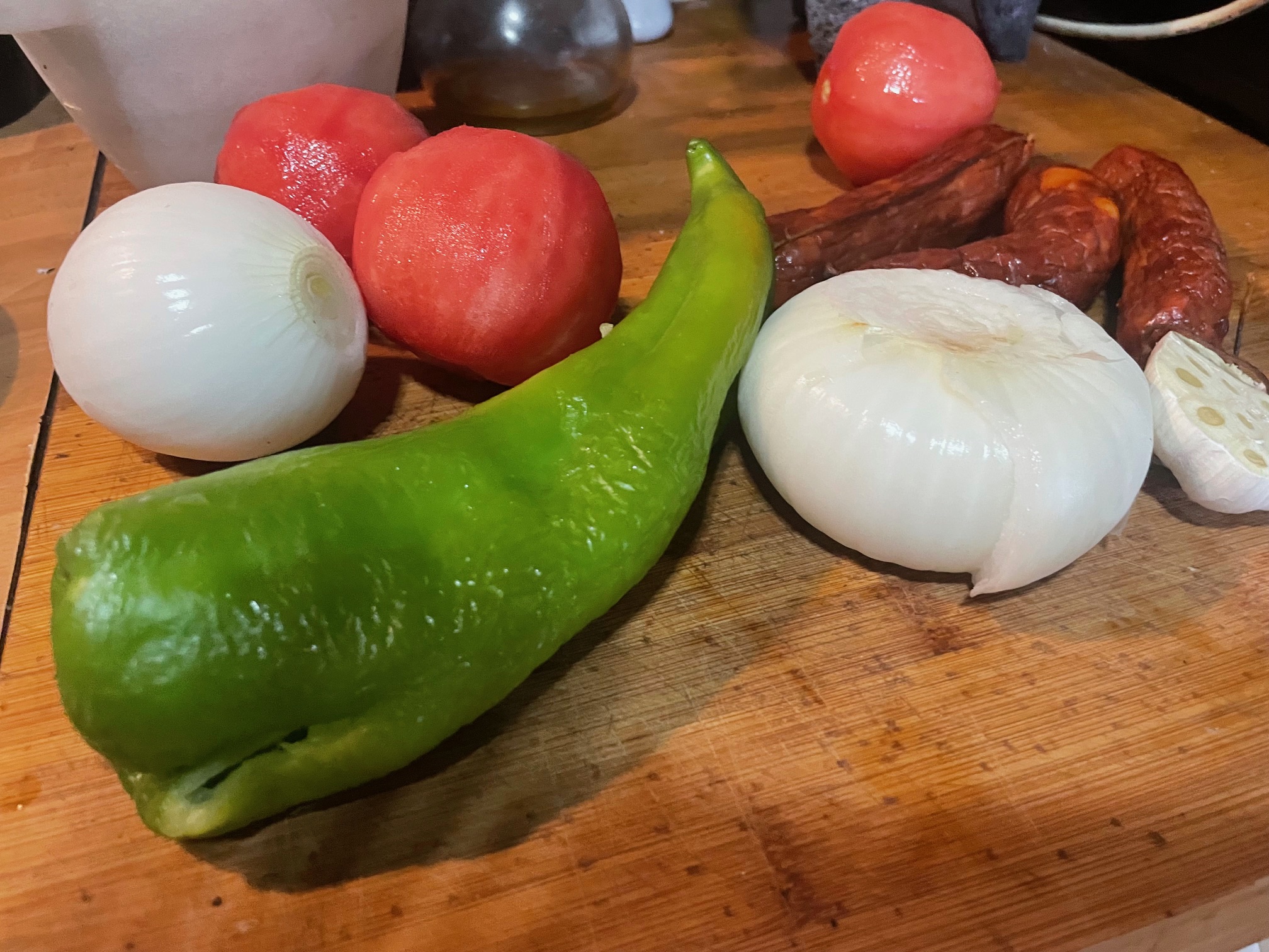 Dejamos unos 5 minutos más para que se integren los sabores, cortamos los chorizos y lo tenemos preparado.