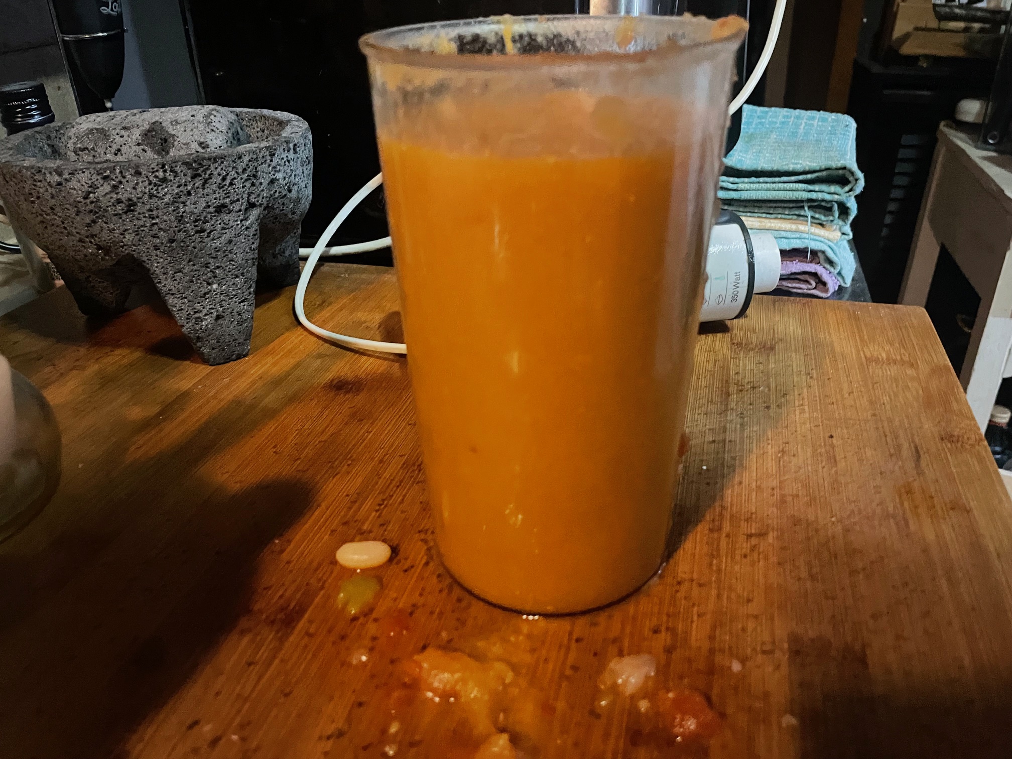 Retiramos las verduras, las pasamos por la batidora y añadimos a las alubias