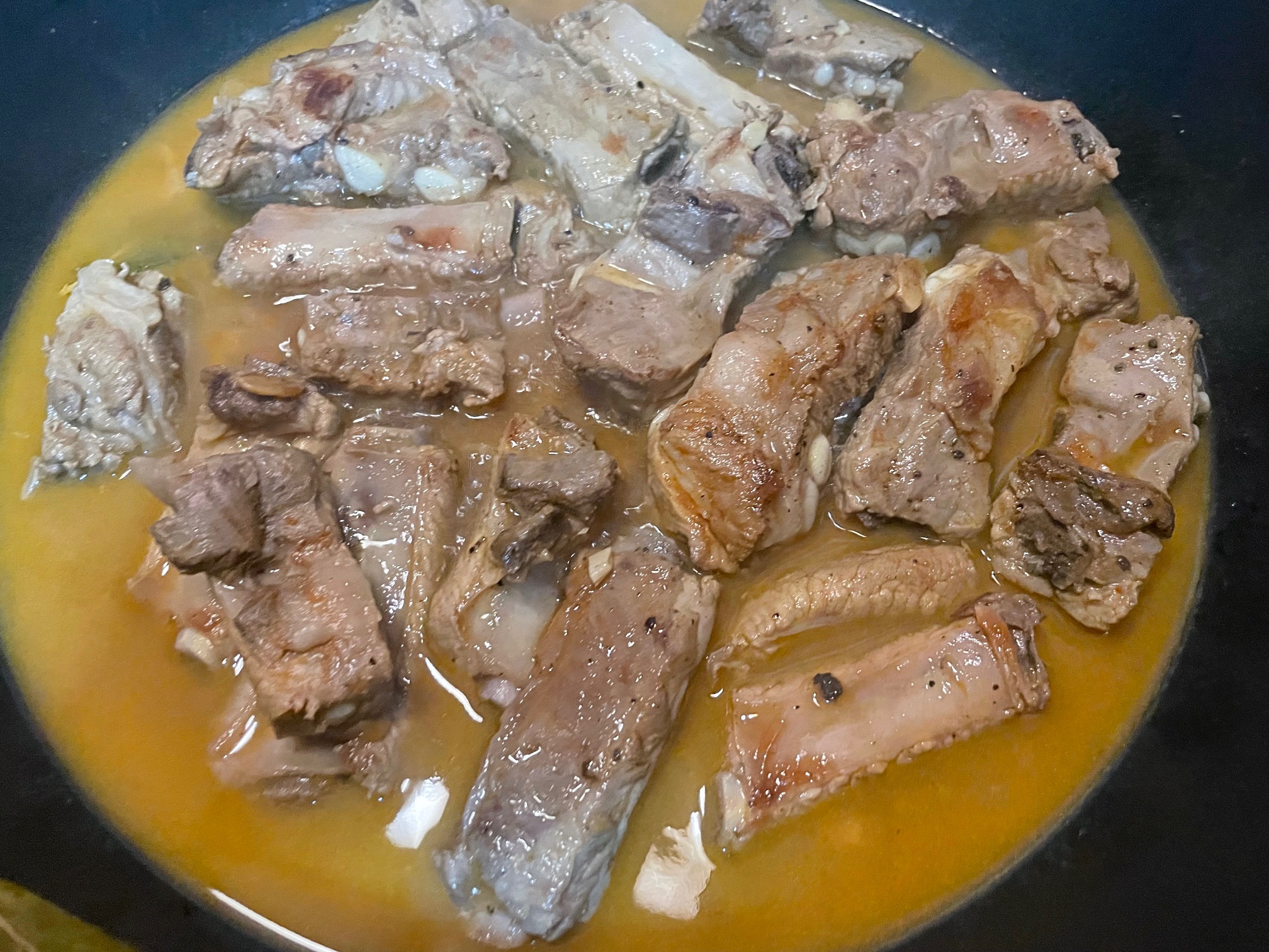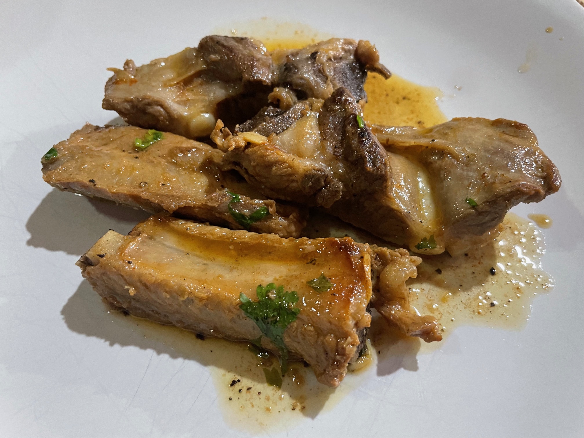 Costillas de cerdo al ajillo en vino blanco «De las cosas del comer»