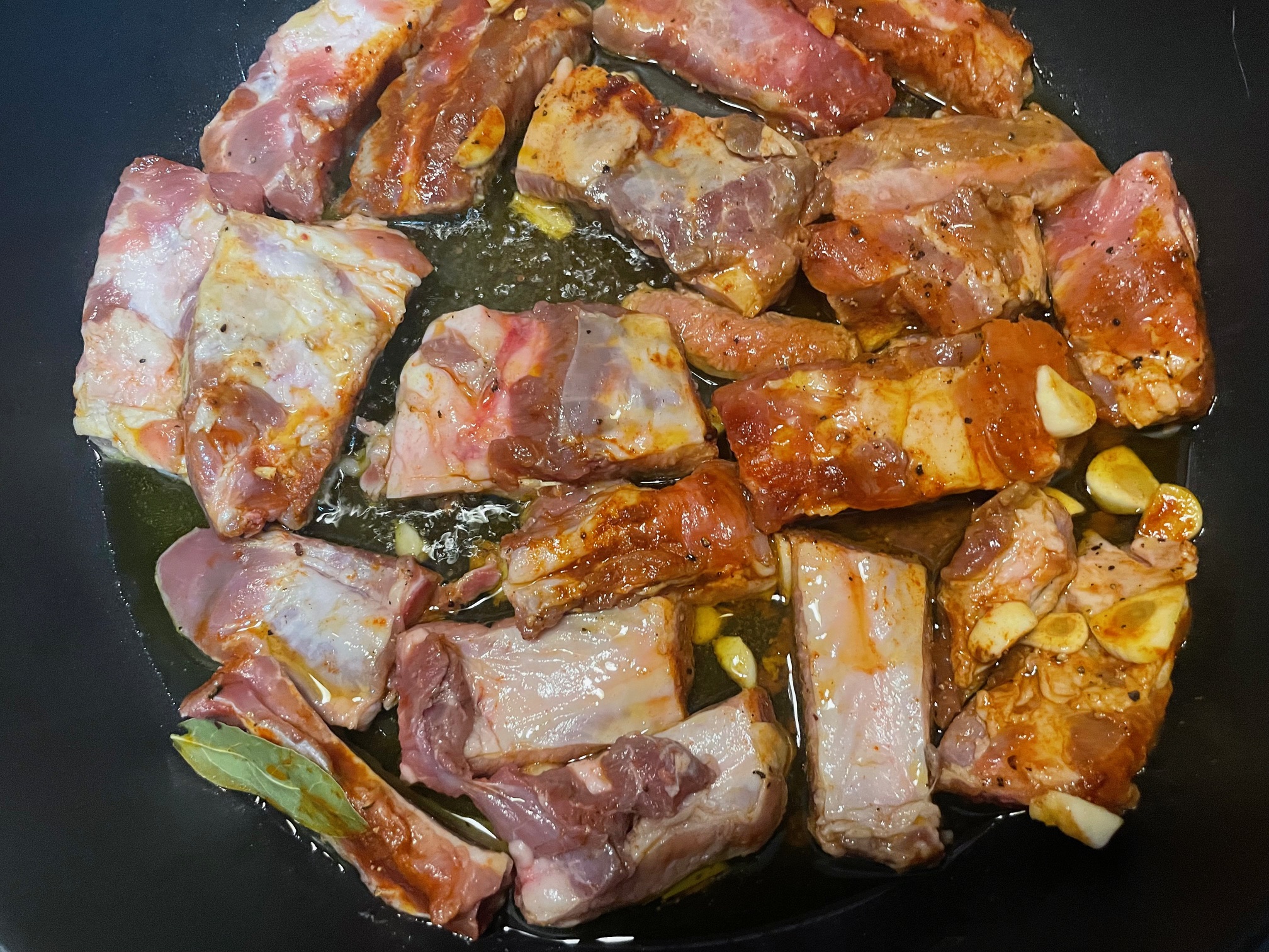 Costillas de cerdo al ajillo en vino blanco