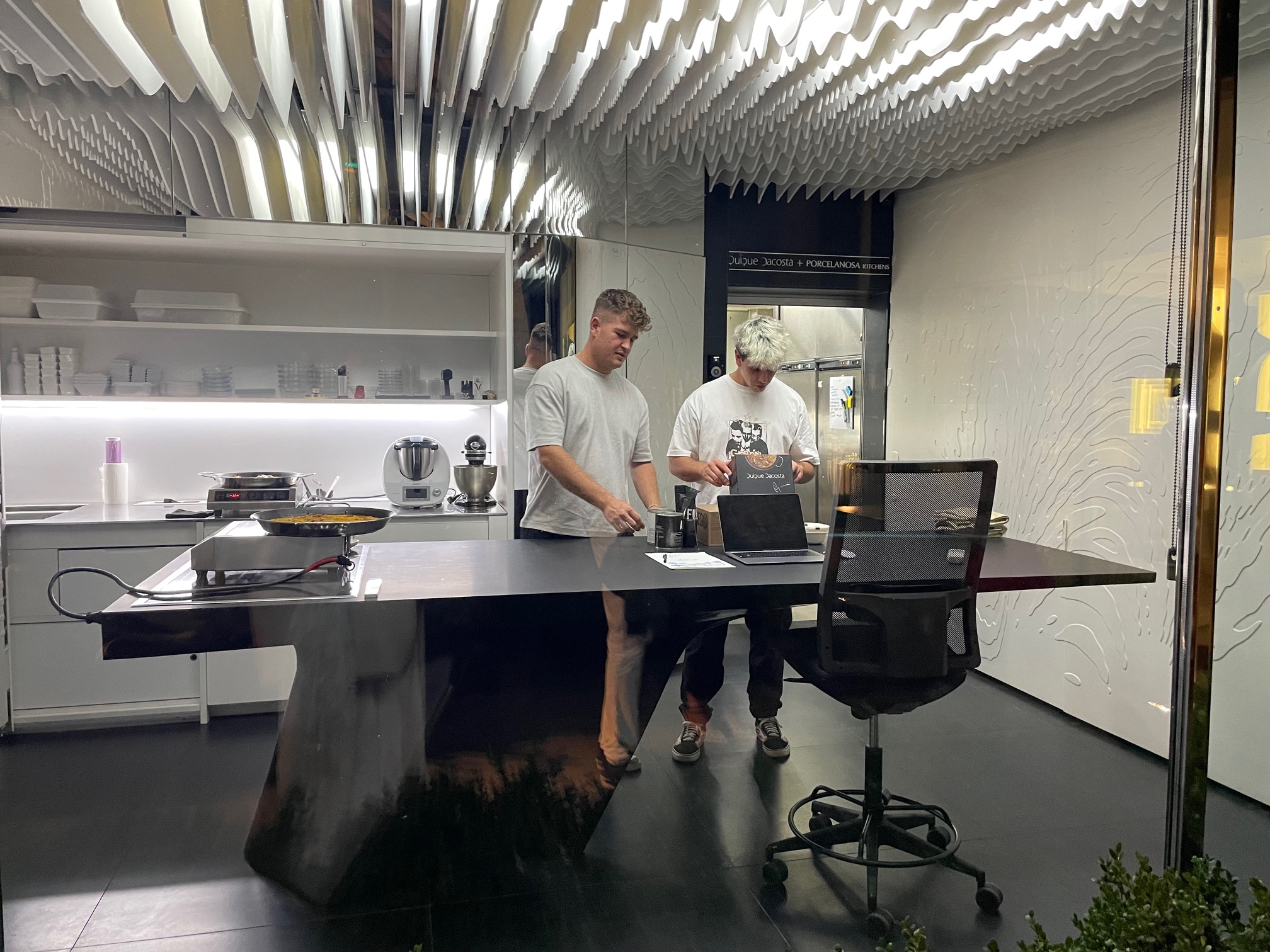 La inmersión en su mundo comienza pasando por el Studio de Creatividad, donde Juanfra Valiente, su Jefe de cocina, al que Dacosta considera el mejor cocinero del mundo, idean nuevas elaboraciones.