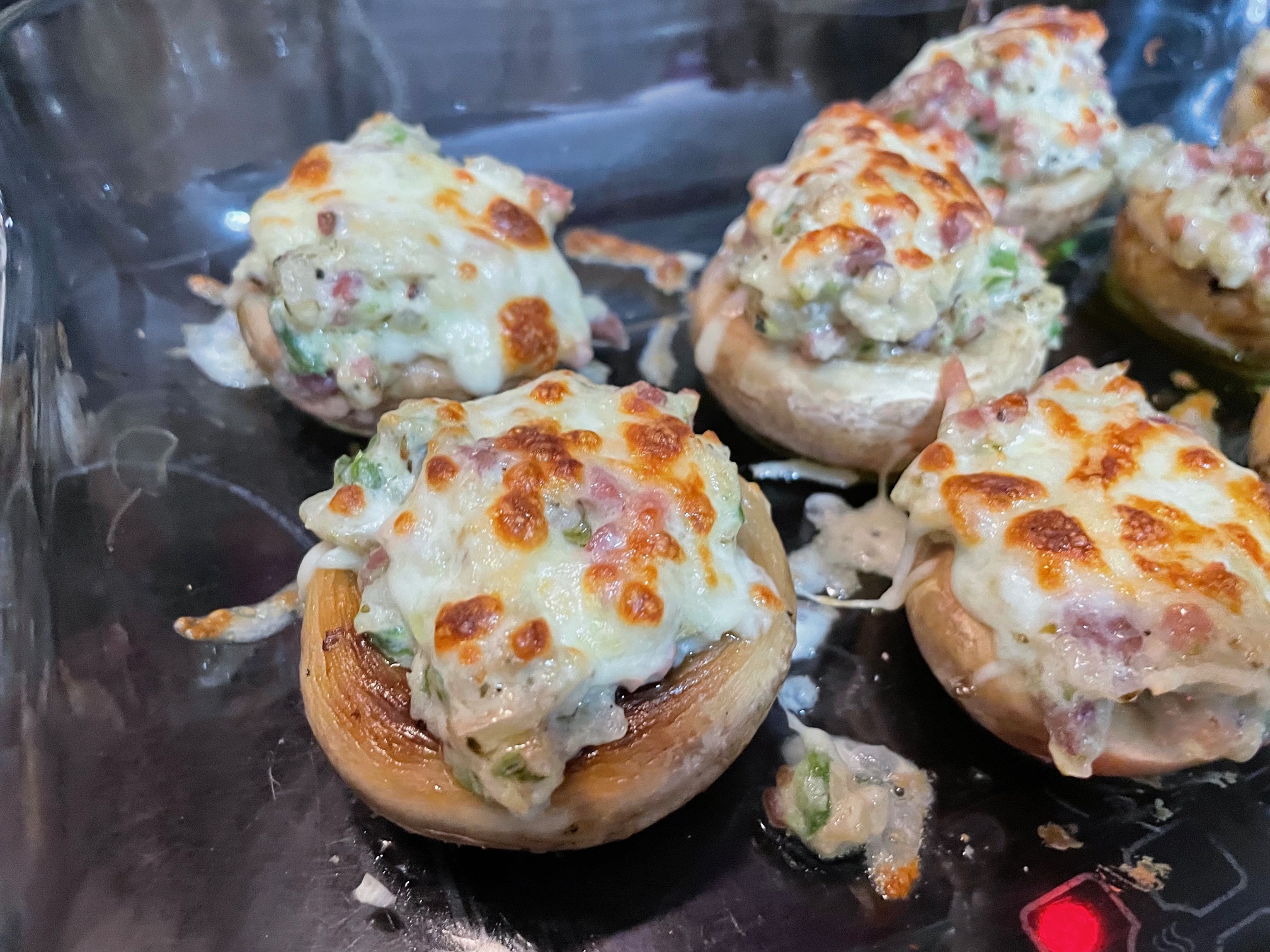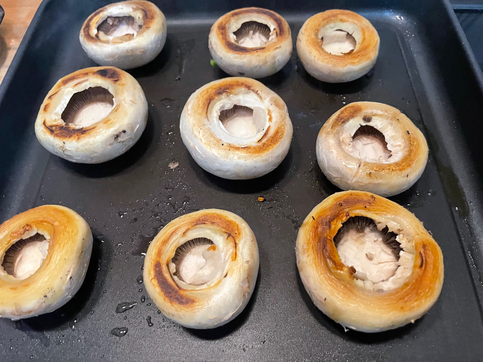 Tenemos el horno precalentado y los metemos a 200 grados con calor arriba y abajo, cuando se derrite la mozzarella los tenemos listos