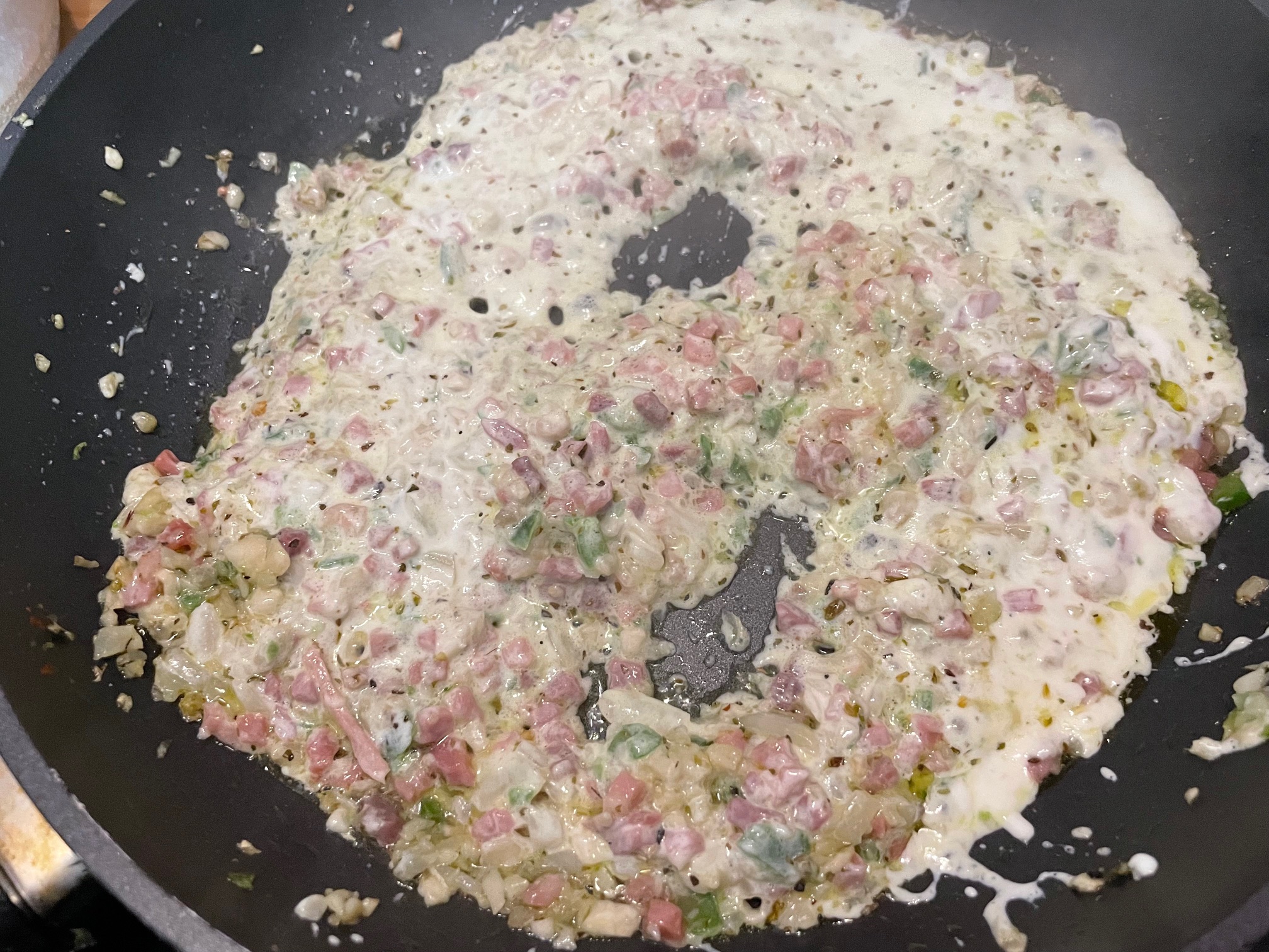 Añadimos la nata liquida, el orégano y la pimienta