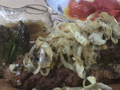 Solomillo Ibérico con especias y cebolla al vino blanco